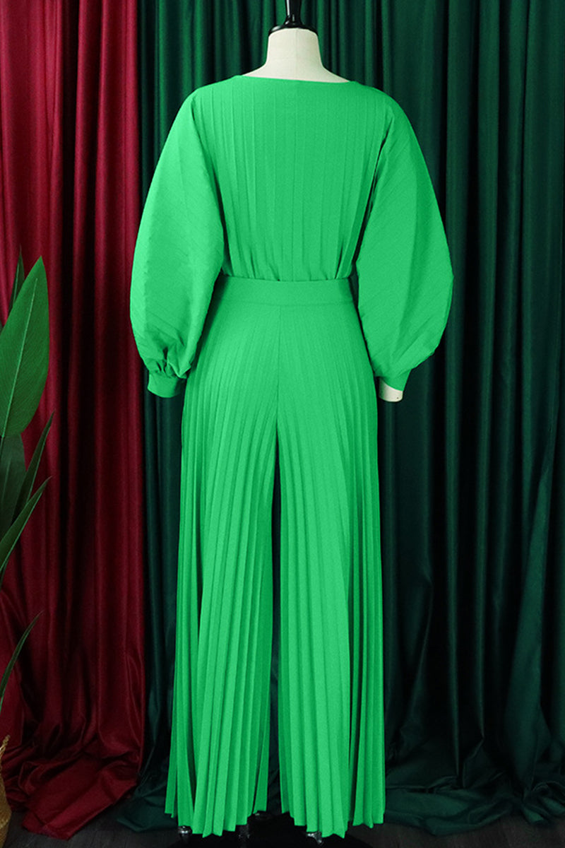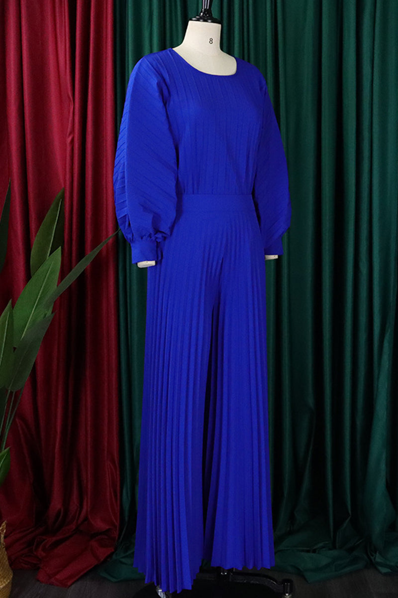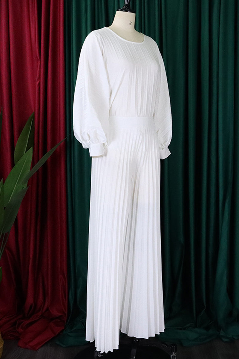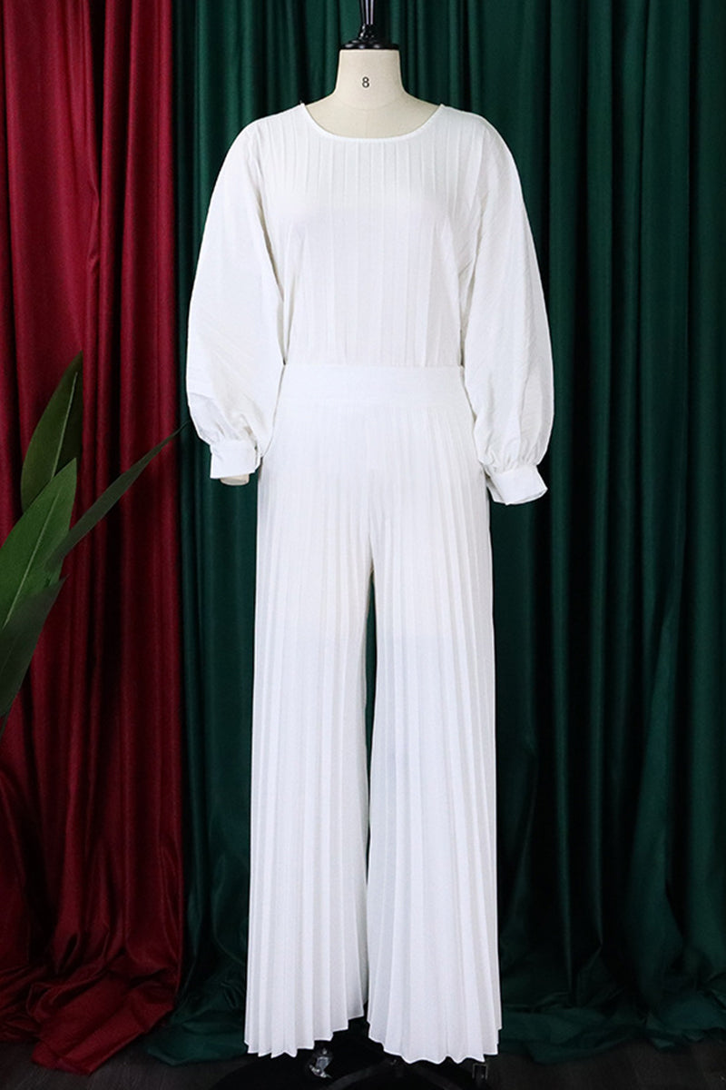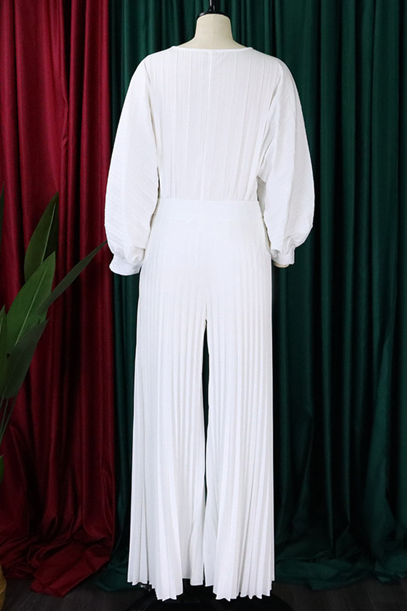 Elegant Solid Patchwork Pleated O Neck Plus Size Two Pieces(4 Colors)