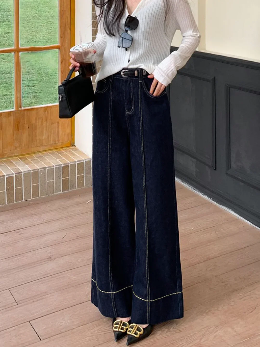 Design: These jeans feature a classic wide-leg silhouette, offering a timeless and sophisticated look suitable for various occasions.