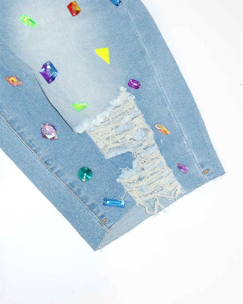 - Intricate Detailing: Adorned with diamond beading, these shorts add a touch of sparkle and sophistication to your casual wardrobe, making them perfect for both daytime outings and evening events.