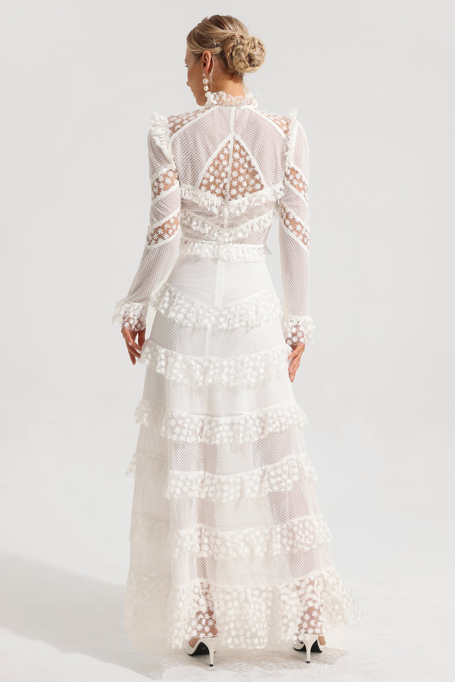 Embroidered Ball Sleeve Top & Ruffle Mid Waist Maxi Skirt Set