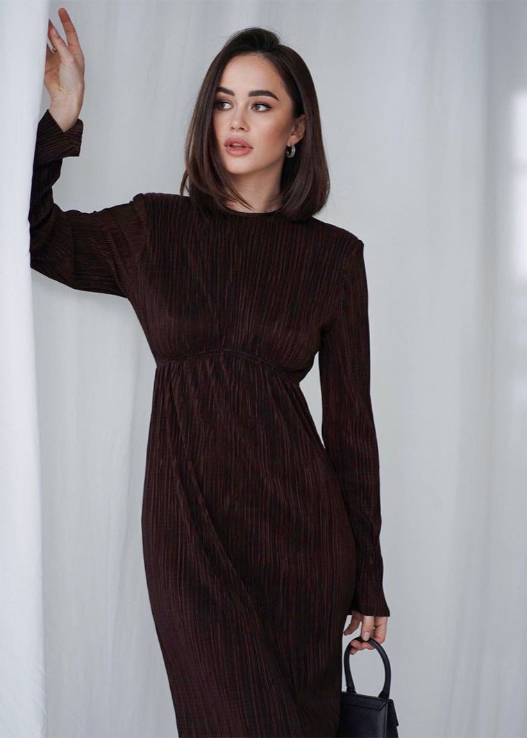 Make a statement with the Emerald Glow Open-Back Dress, a fusion of timeless sophistication and modern allure. Crafted with precision, this dress features a unique open-back design secured with delicate straps, adding a captivating touch to its classic silhouette. The long sleeves and flowing midi-length create an effortlessly elegant look, perfect for formal evenings or upscale gatherings. Designed from a premium pleated fabric, it drapes gracefully, ensuring comfort and style with every step.