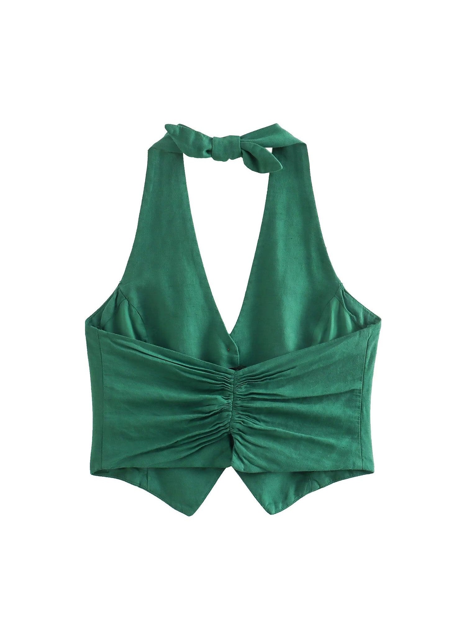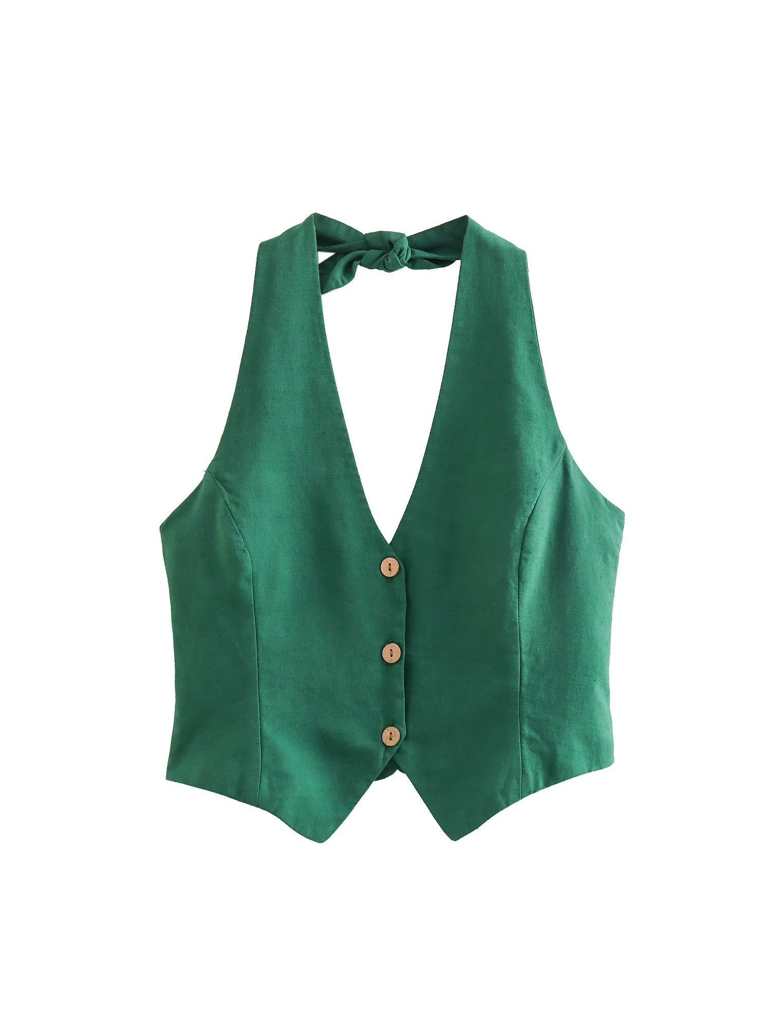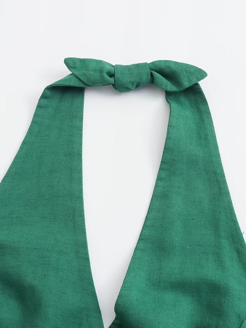 Emerald Green Halterneck Vest Waist Coat & Wide Leg Pants Coord Set