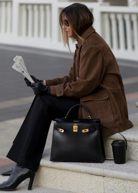 The Emerson Suede Button-Up Jacket exudes understated luxury and timeless sophistication. Crafted from buttery-soft suede leather, it offers a relaxed fit and impeccable tailoring for a refined yet comfortable silhouette. Featuring classic button closures, functional flap pockets, and detailed cuffs, this jacket effortlessly enhances any outfit. Ideal for everyday wear or elegant evenings, the Emerson Jacket is a versatile addition to your seasonal wardrobe.