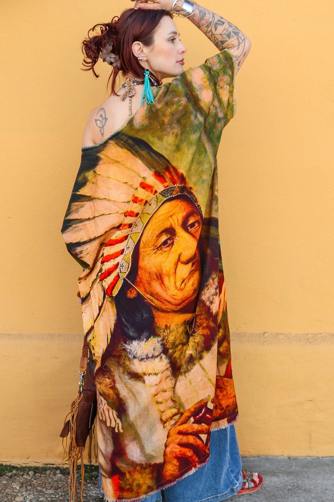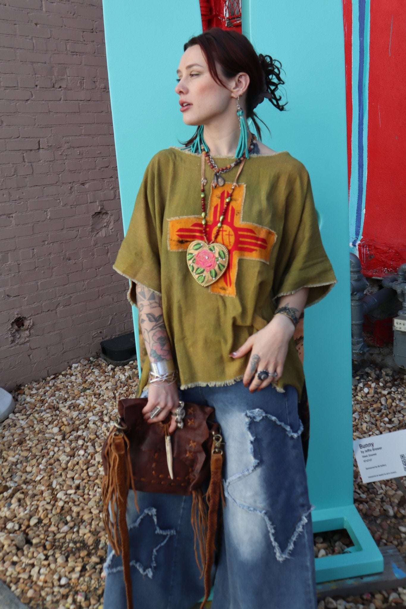 Bold, flowing, and full of statement, this endlessly colorful tunic redefines effortless style. With a matching high-low hem, it moves with ease. The raw edges add a handmade feel, while the playful moon appliqué on the front adds just the right amount of whimsy. Whether you're strolling the beach or teaming it with denim in the city, this dress lets you express yourself.