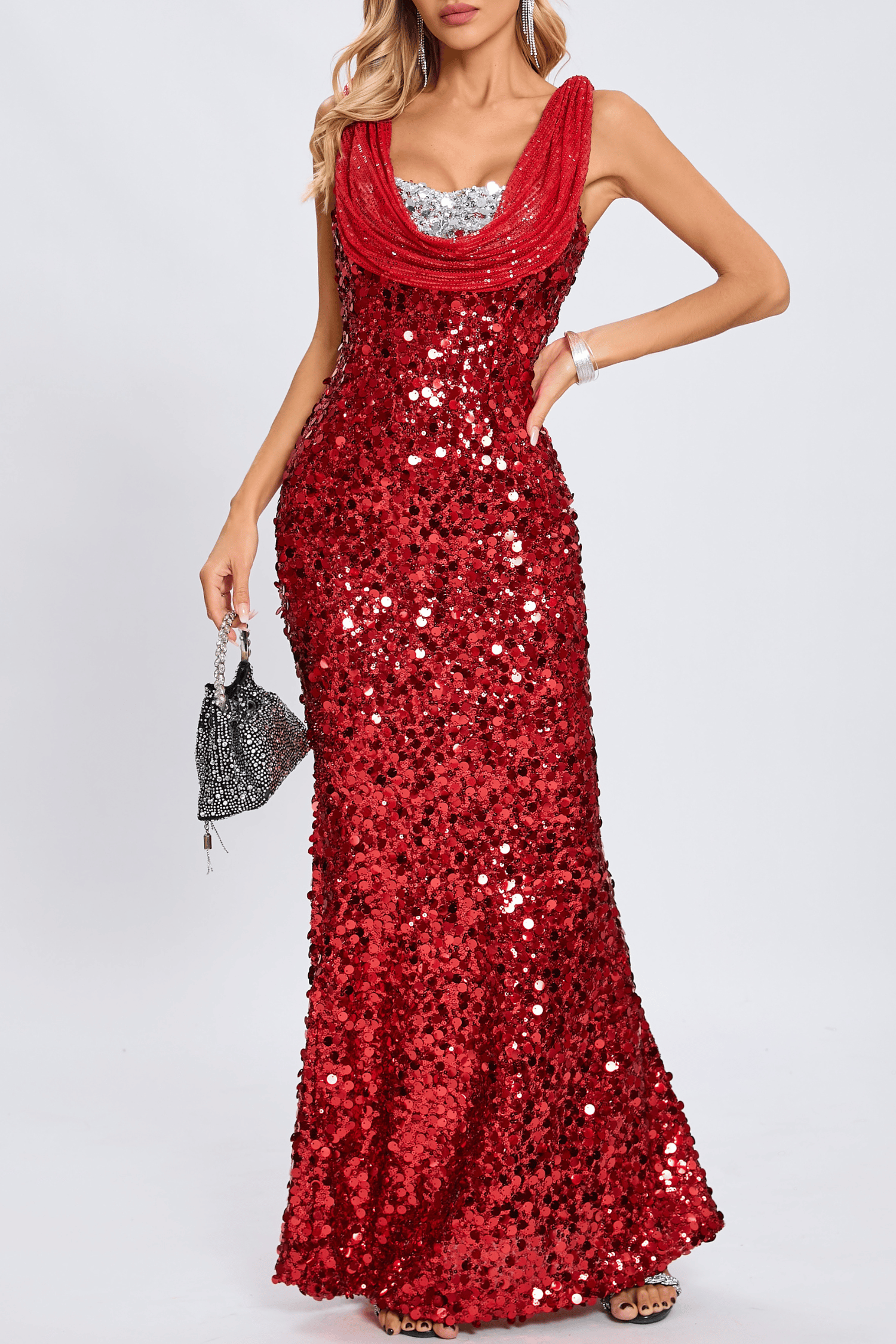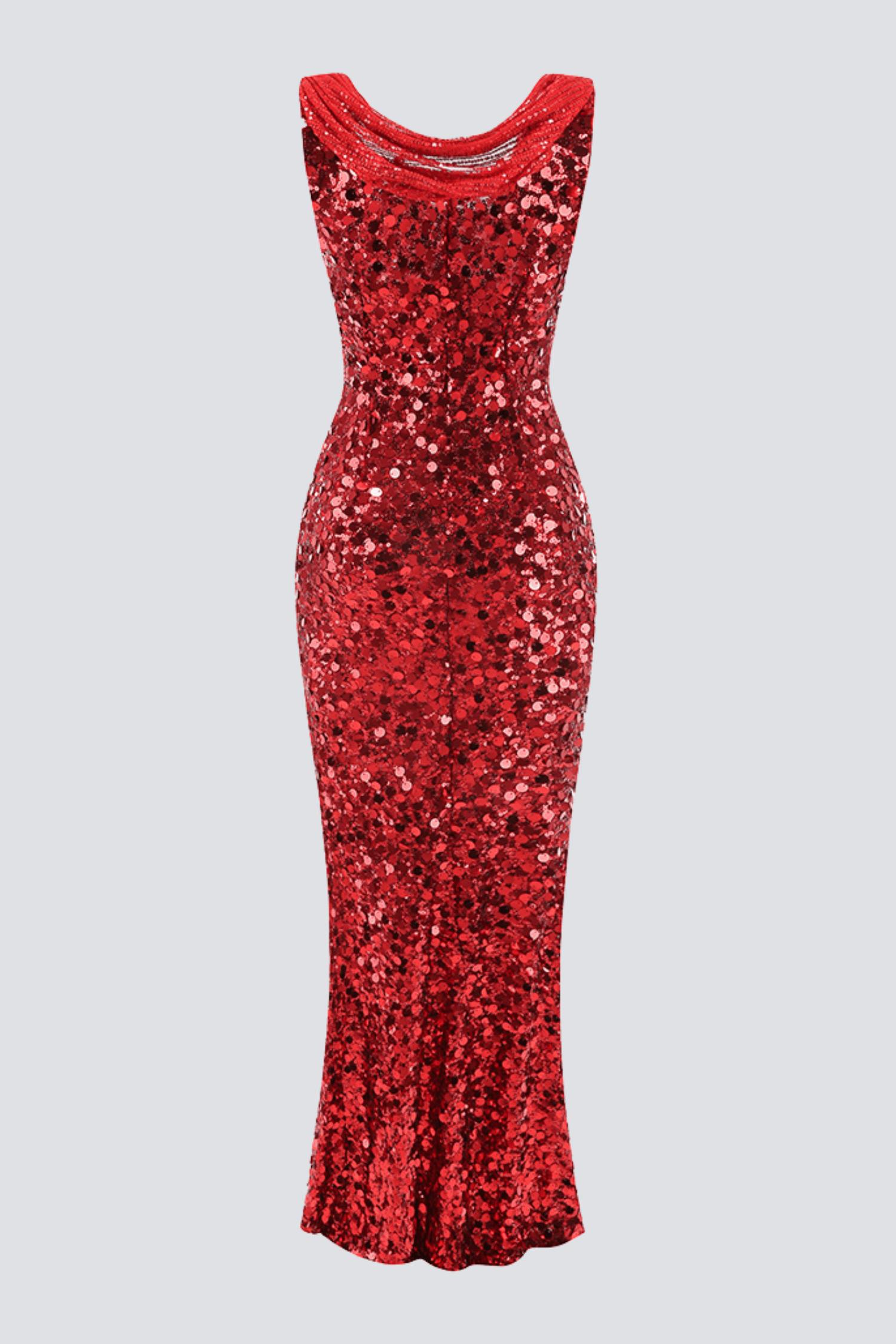 Indulge in the decadent glamour of our Erazem Sequin Maxi Dress. The intricate sequin design, cascading down the full length of the dress, will catch the light and turn heads at any event. With a figure-hugging silhouette, this dress will make you feel like a true red carpet star.