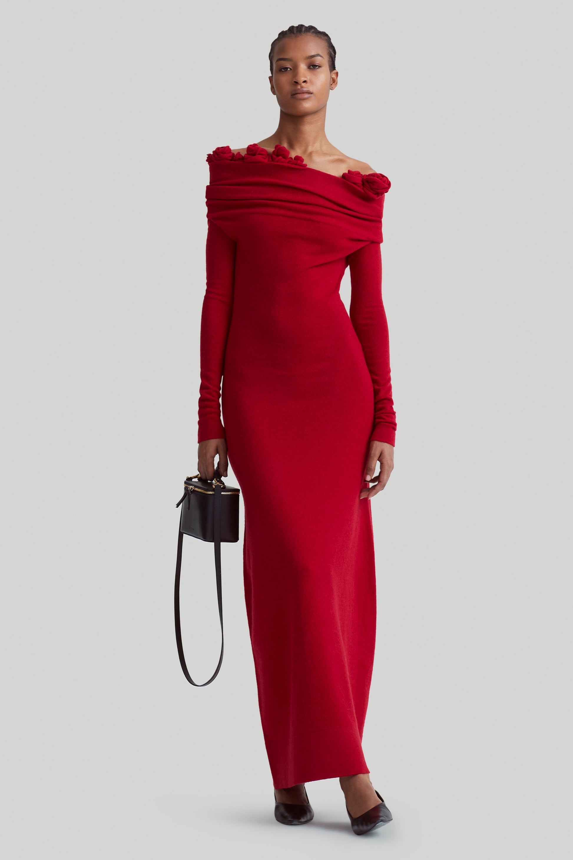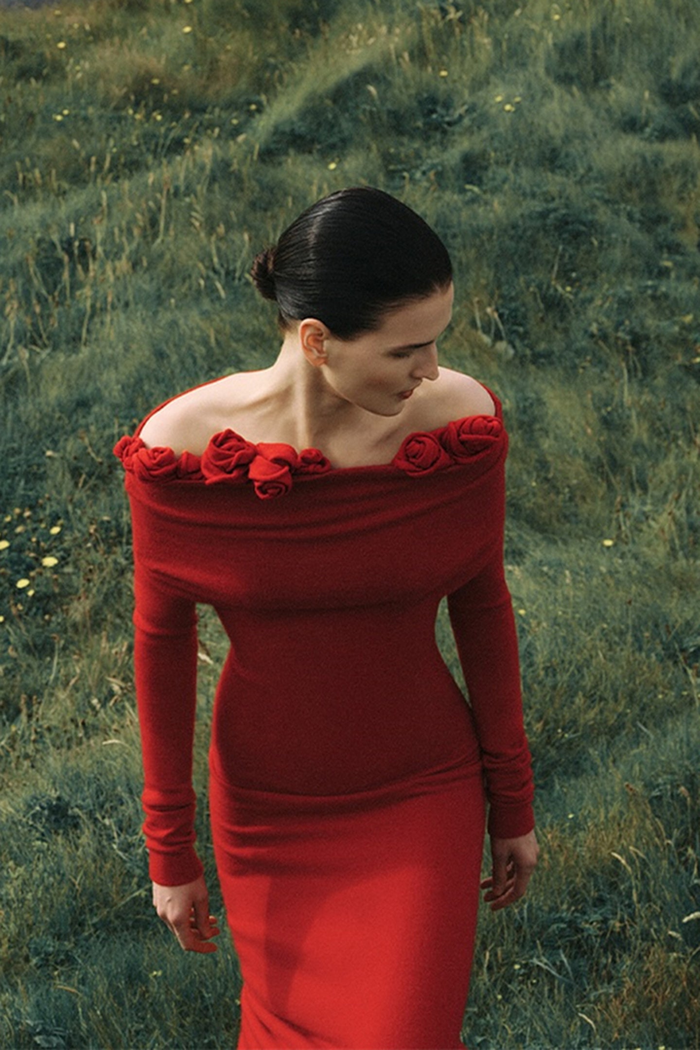 Roses Detailed, One Shoulder, Long Sleeve, Maxi Length.