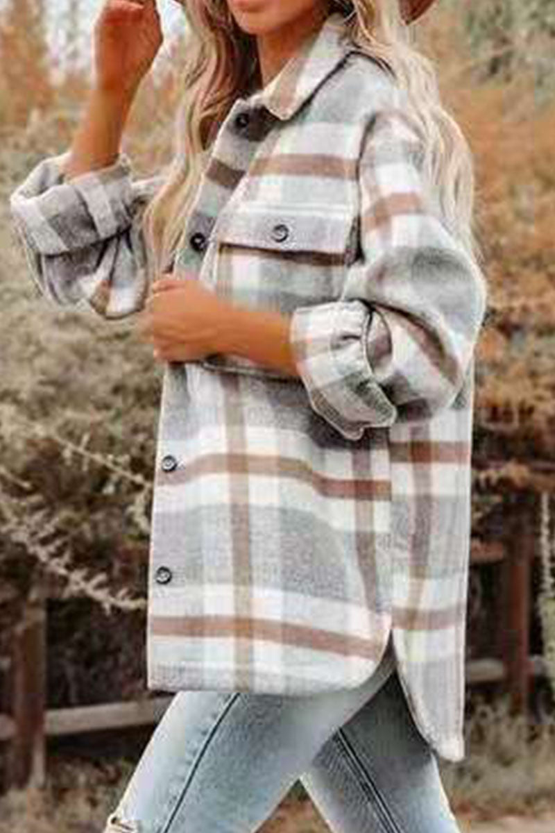 Fashion Plaid Turndown Collar Outerwear