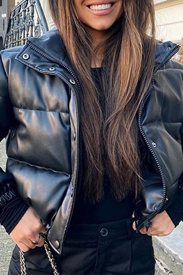 Fashion Casual Solid Buckle Zipper Mandarin Collar Outerwear