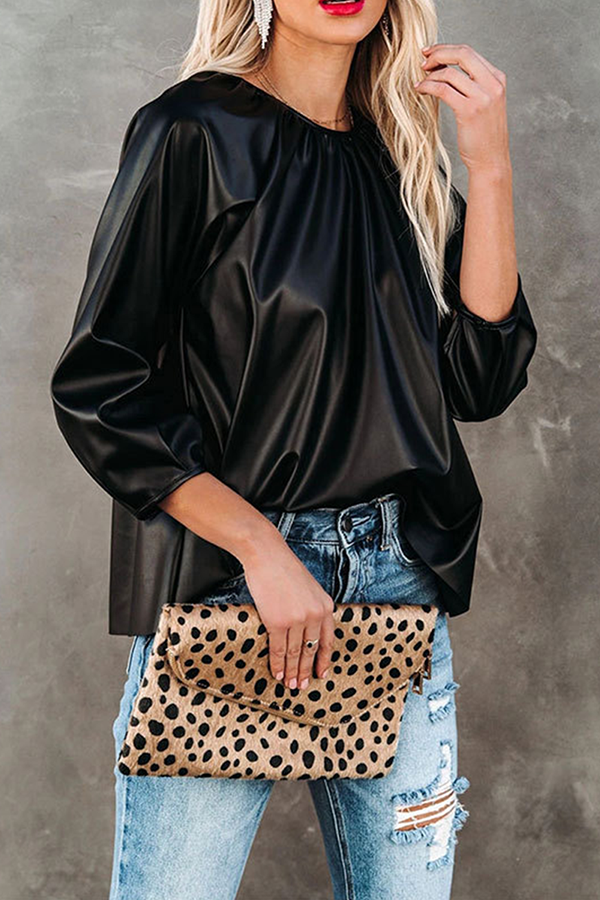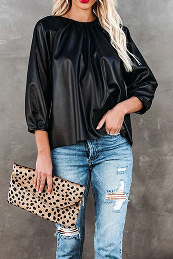Fashion Casual Solid Split Joint Fold O Neck T-Shirts