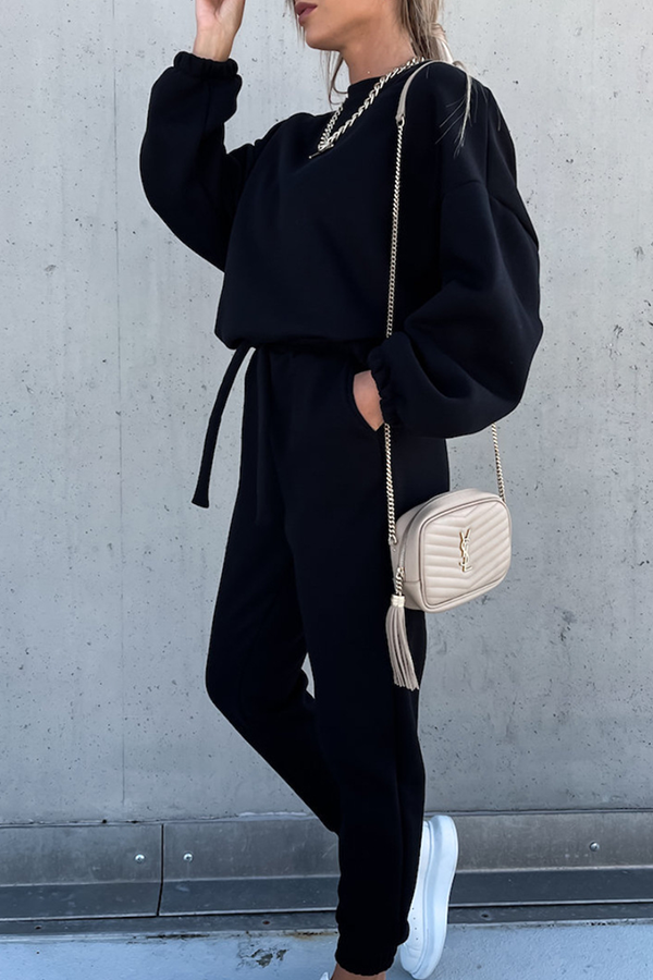 Fashion Casual Solid Patchwork Frenulum O Neck Long Sleeve Two Pieces(5 Colors)