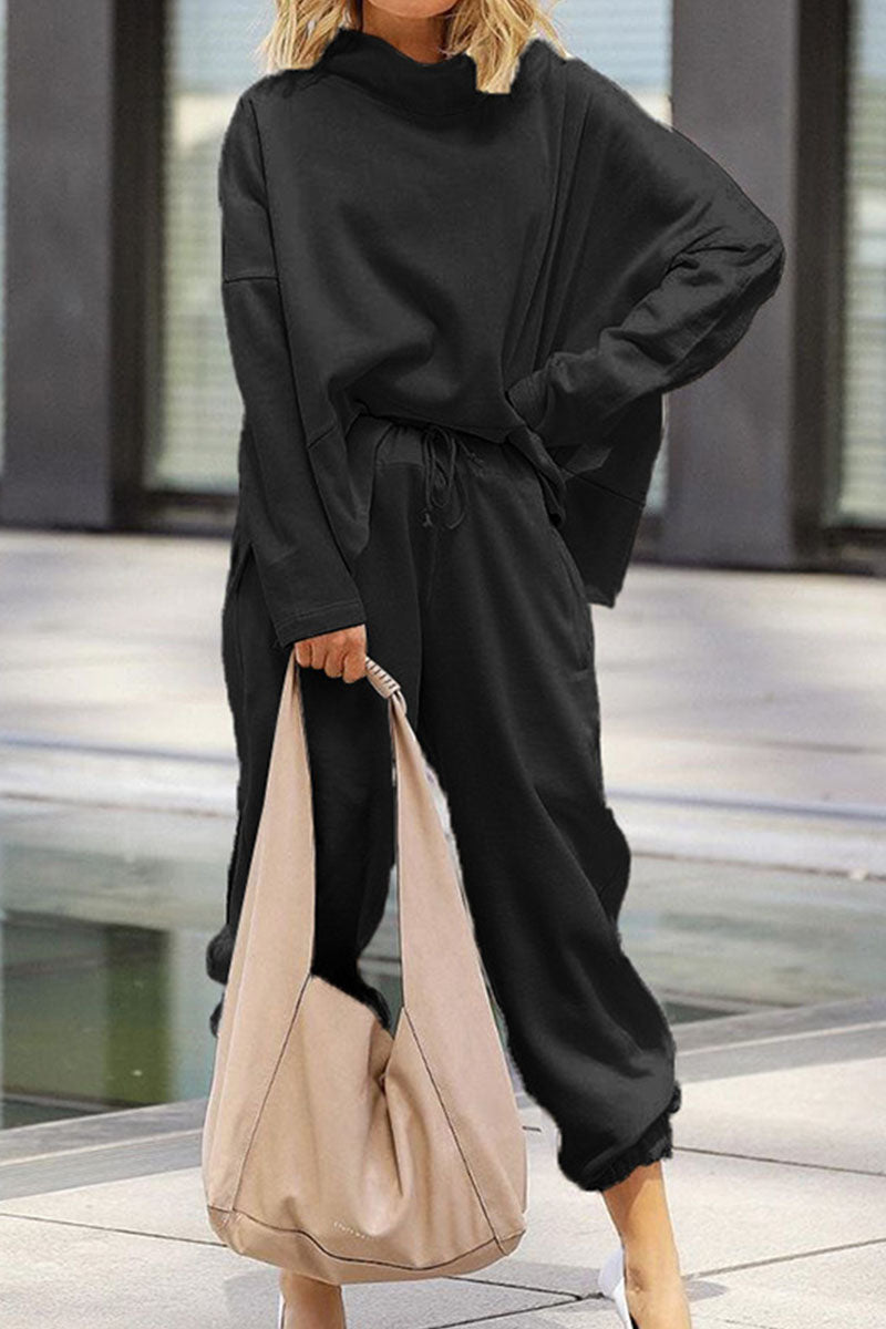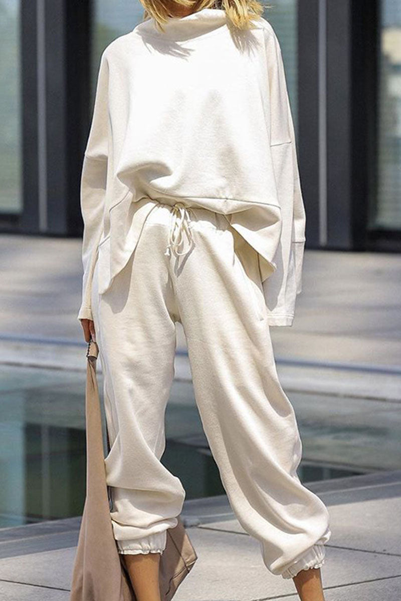 Fashion Casual Solid Patchwork O Neck Long Sleeve Two Pieces(3 Colors)