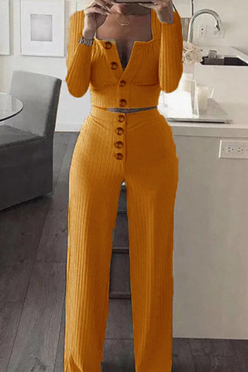 Casual Solid Split Joint O Neck Long Sleeve Two Pieces(5 Colors)