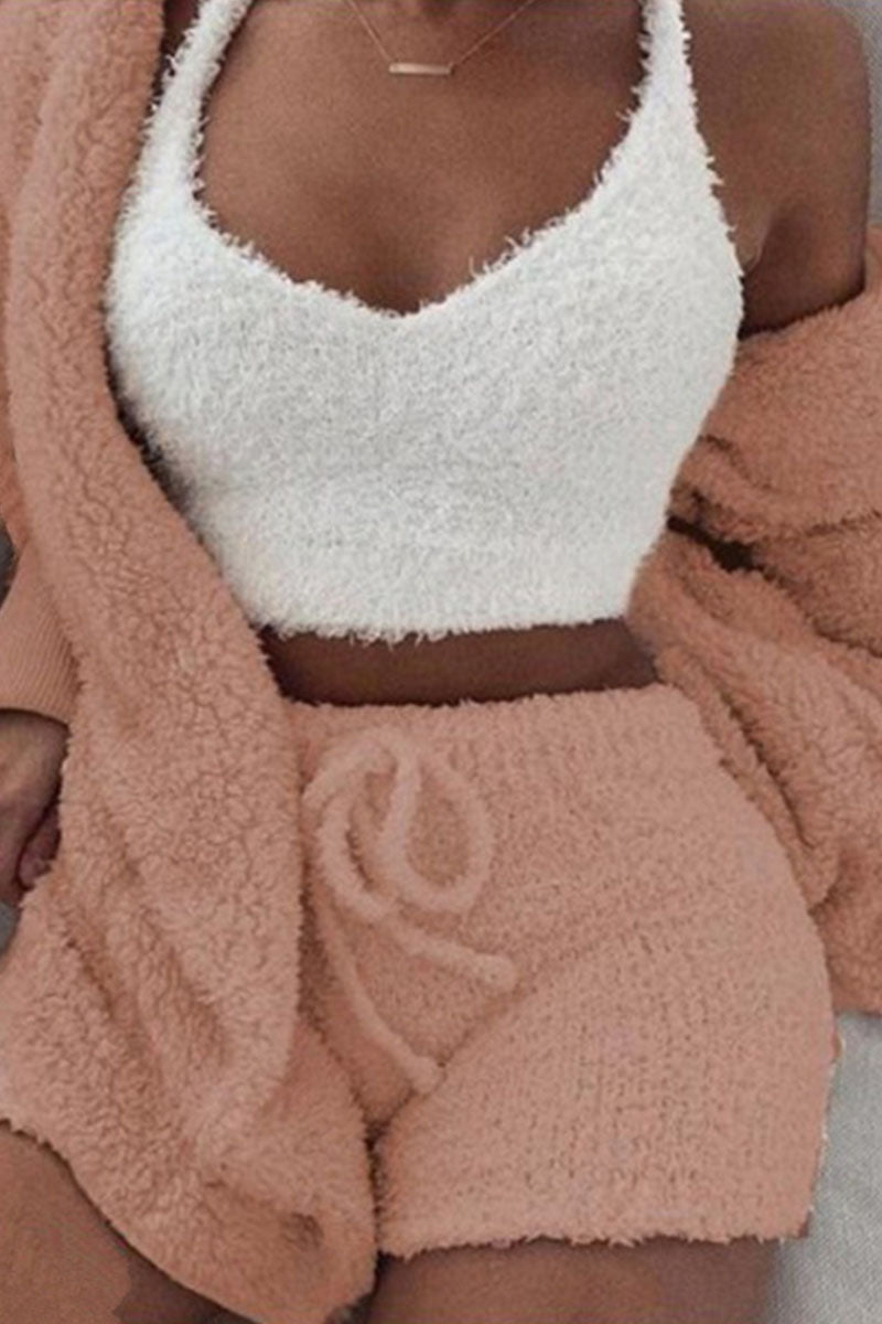 Fashion Casual Solid Patchwork V Neck Long Sleeve Three Pieces(12 colors)