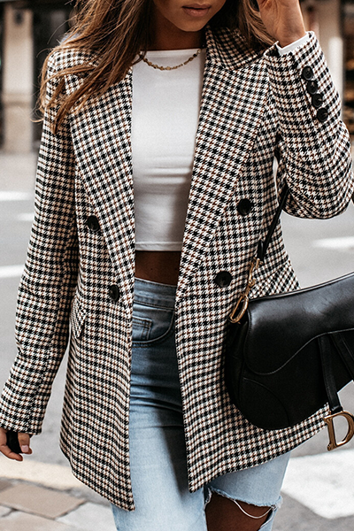 Fashion Elegant Geometric Split Joint Buckle Turn-back Collar Outerwear