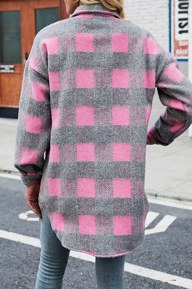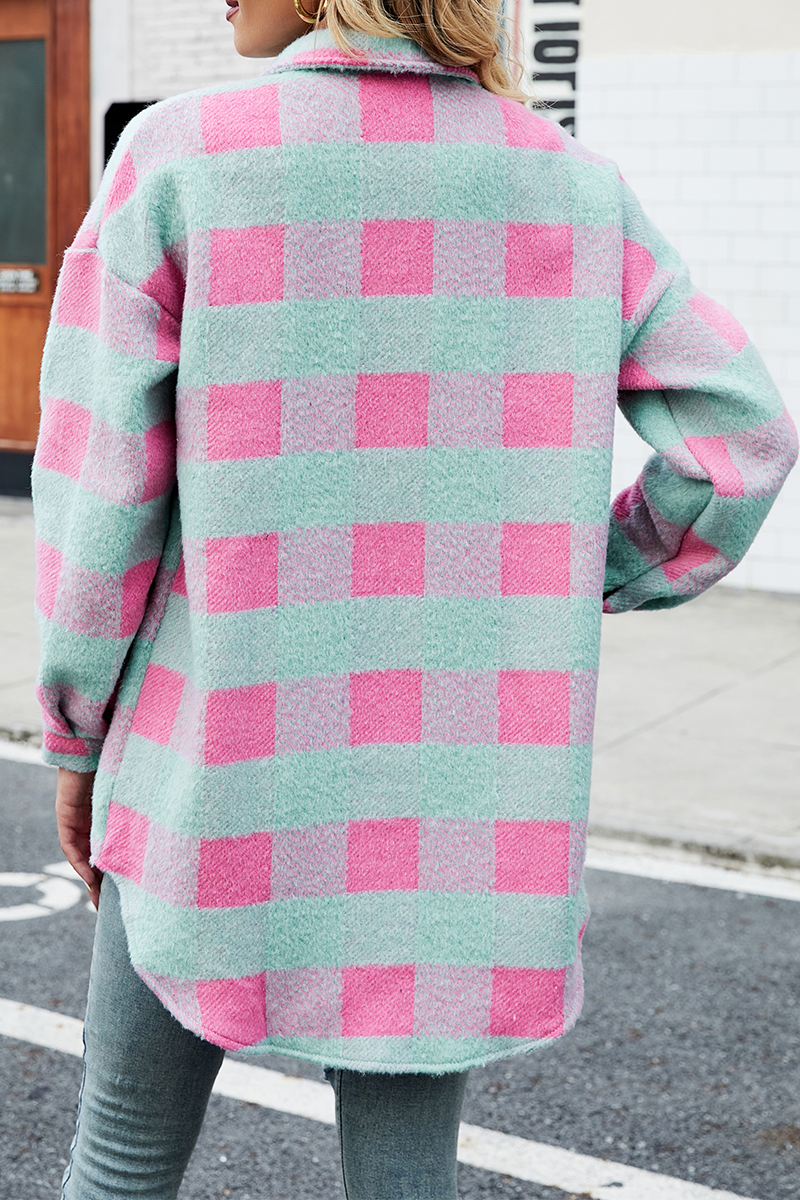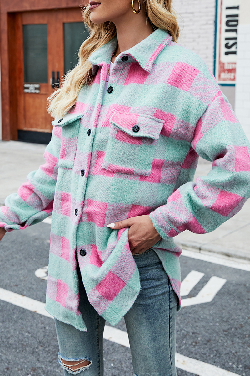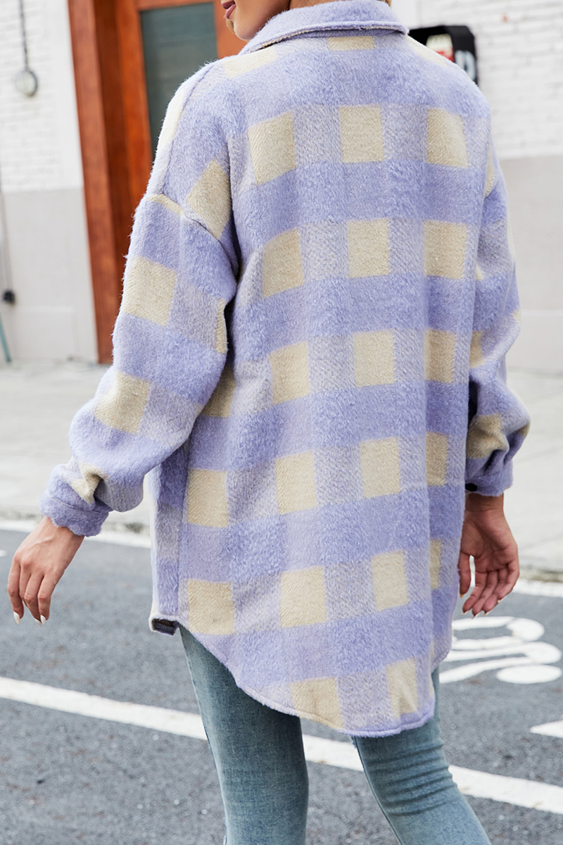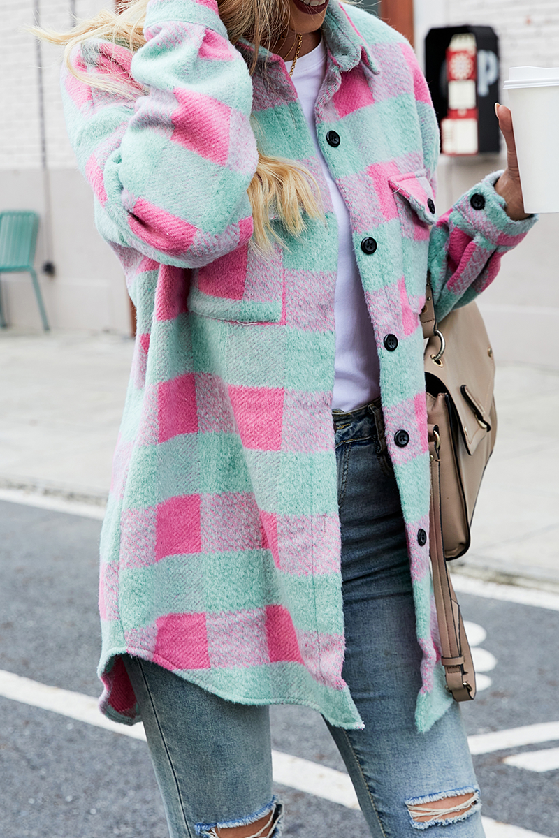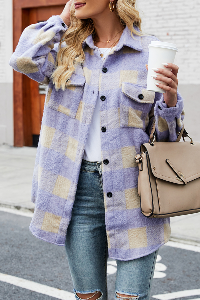 Fashion Elegant Plaid Buckle Turndown Collar Tops(3 Colors)