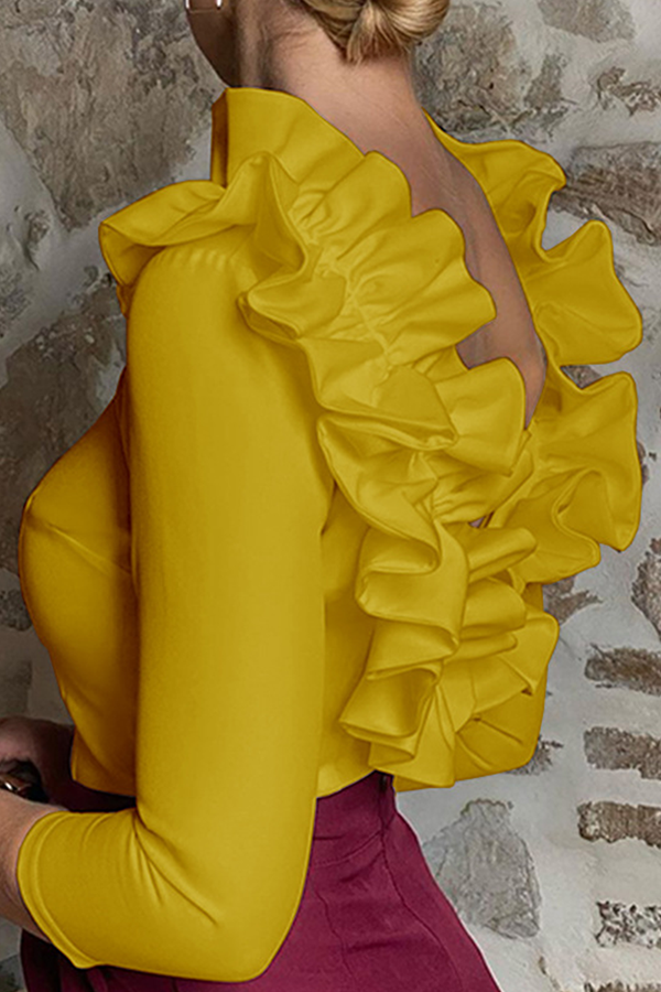 Fashion Elegant Solid Backless Flounce Lotus Leaf Collar Tops(3 Colors)