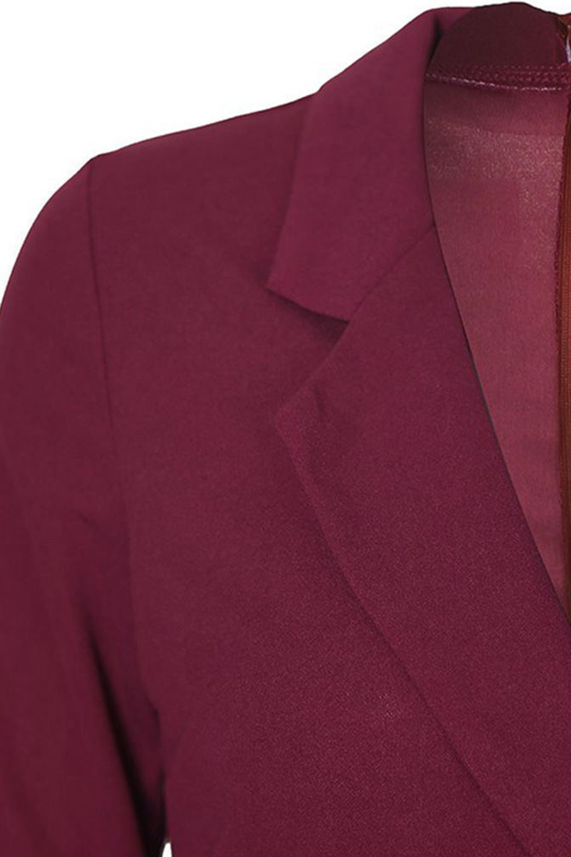 Elegant Solid Patchwork Buckle Turn-back Collar Wrapped Skirt Dresses(4 Colors)