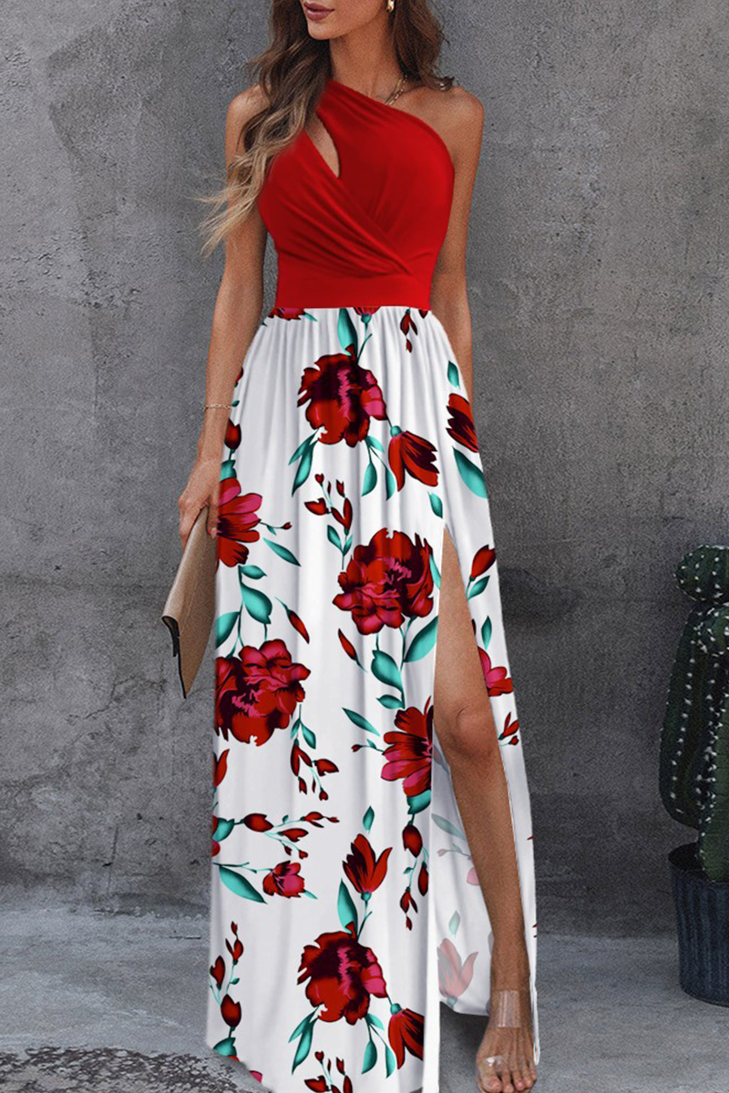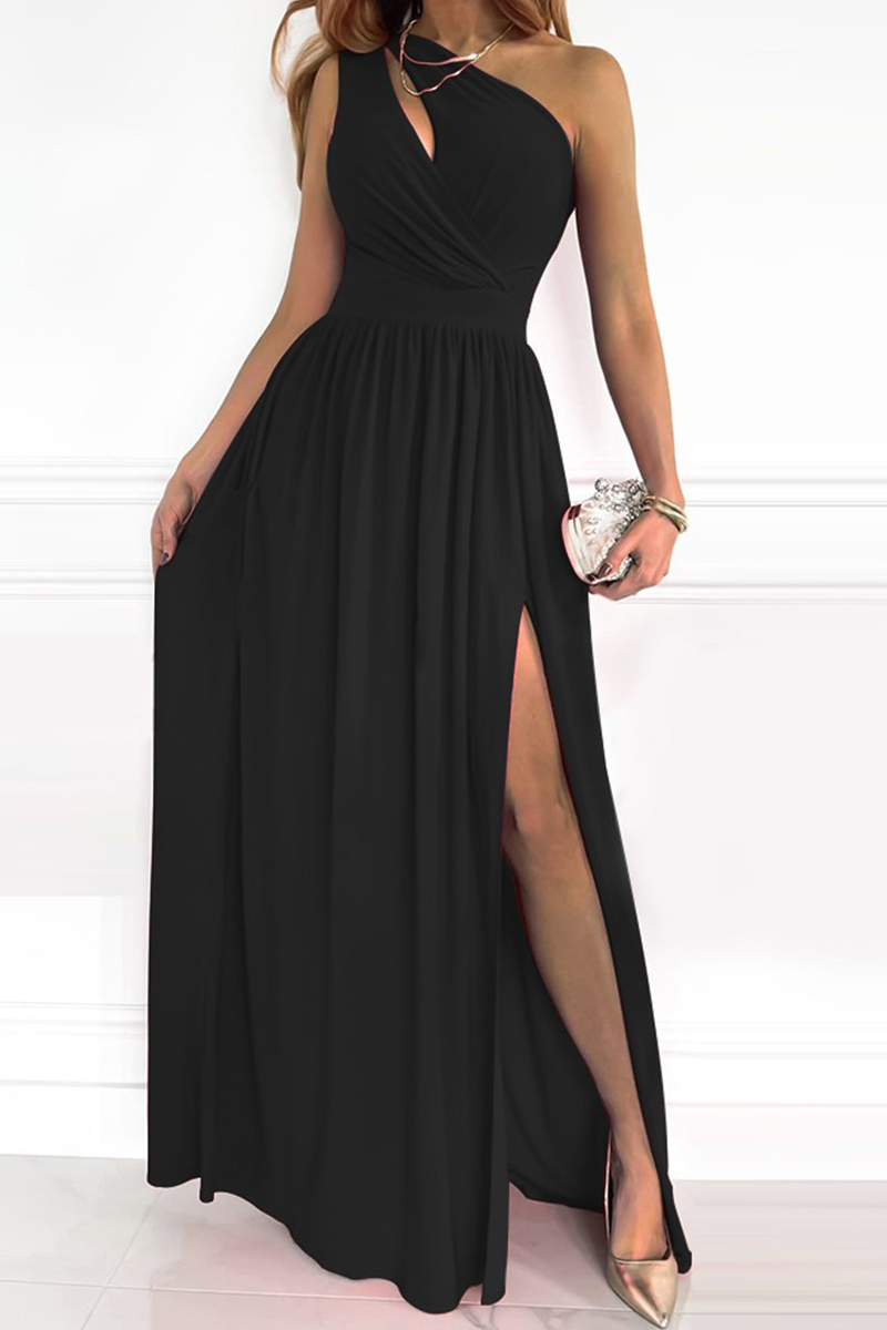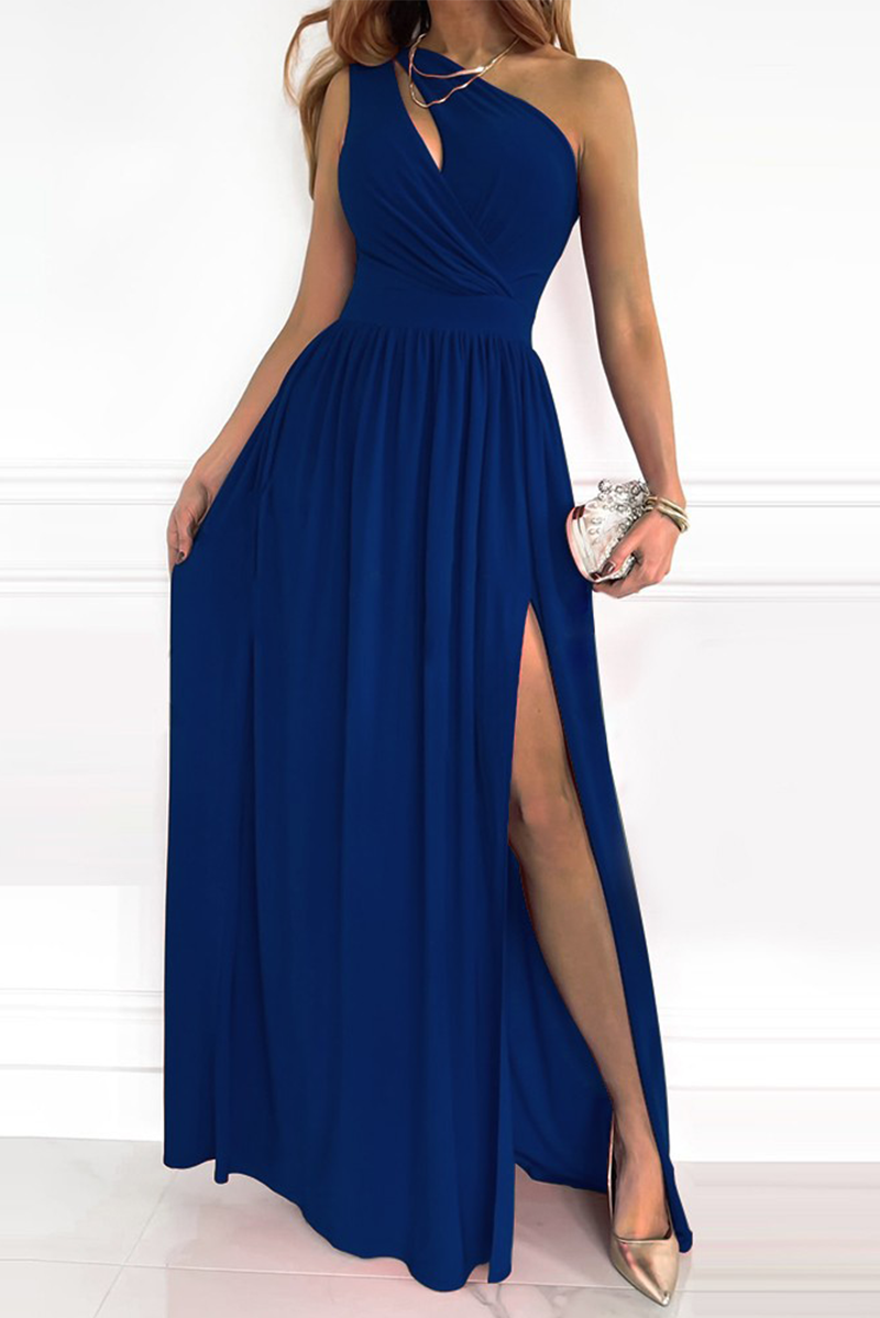 Fashion Patchwork Slit One Shoulder Waist Skirt Dresses(10 colors)