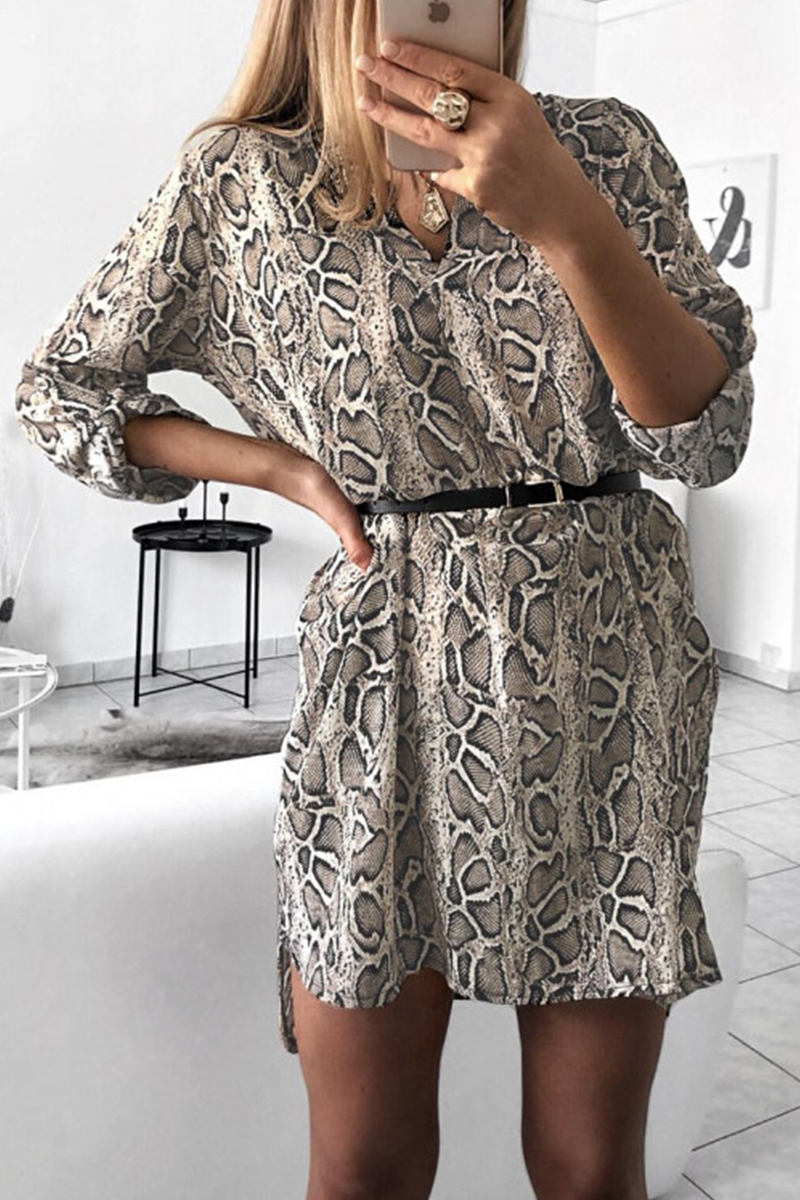 Fashion Print Turndown Collar Straight Dresses(6 Colors)