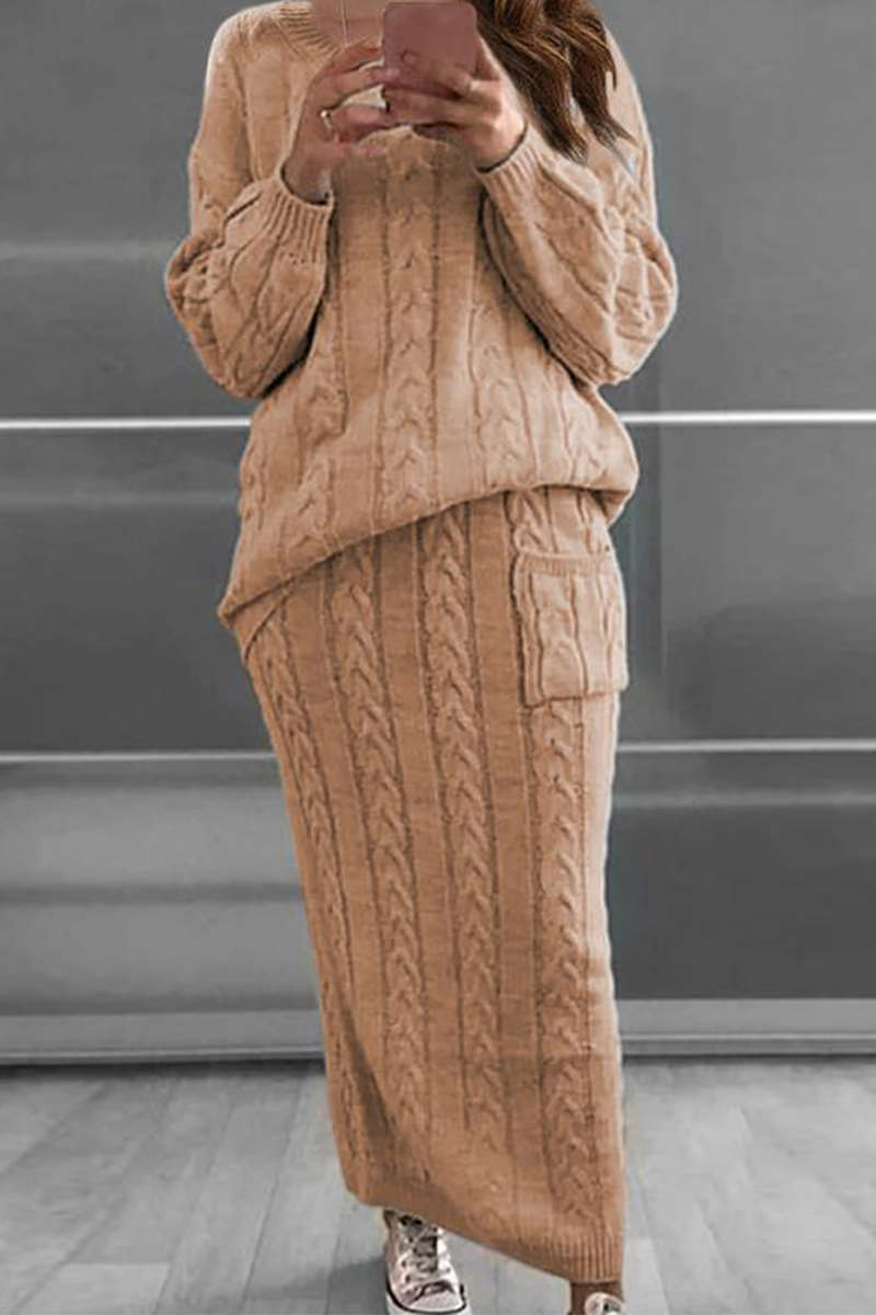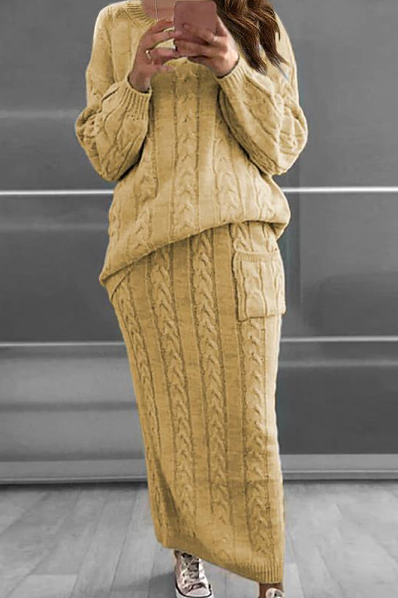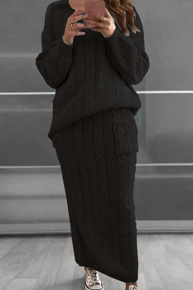 Fashion Solid Patchwork O Neck Long Sleeve Two Pieces(12 Colors)