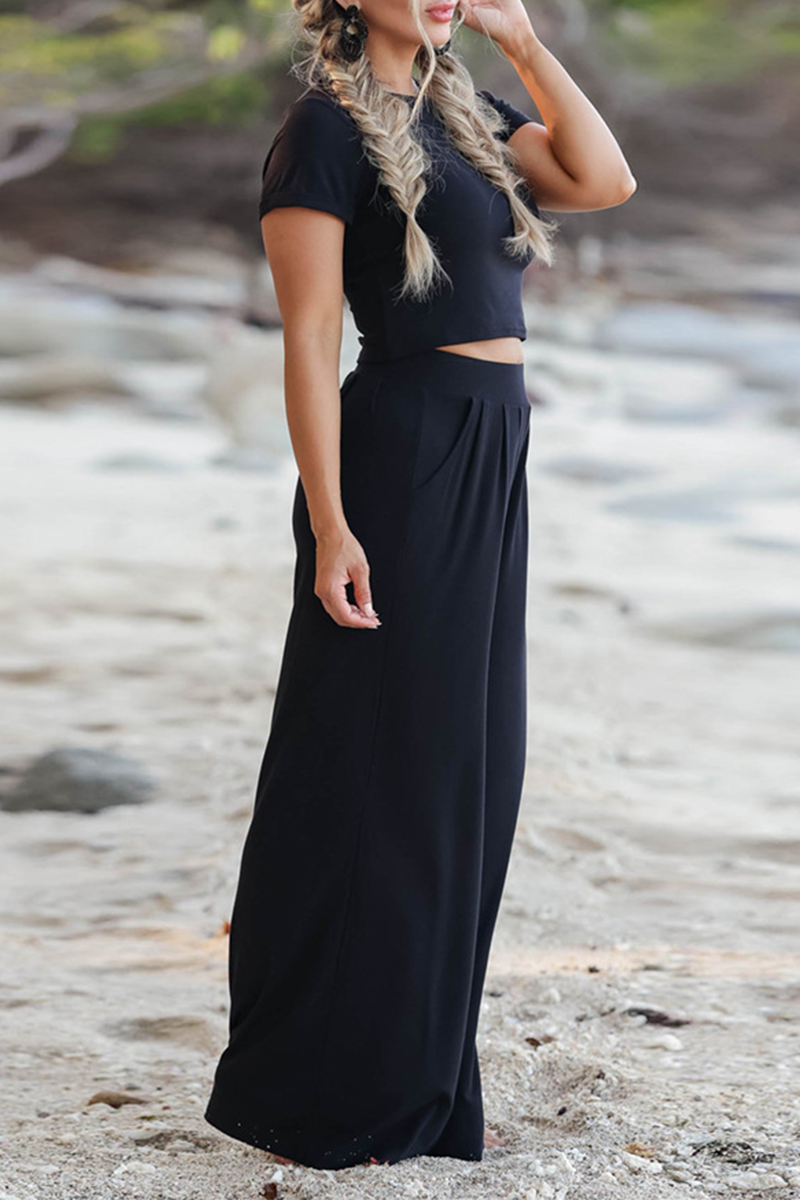 Fashion Solid Patchwork O Neck Short Sleeve Two Pieces(3 Colors)