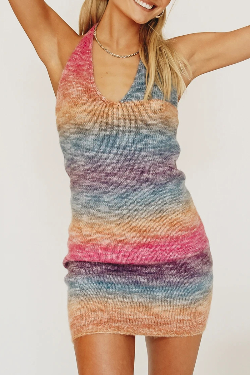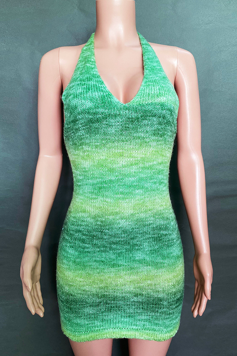 Fashion Street Gradual Change Frenulum Halter Wrapped Skirt Dresses