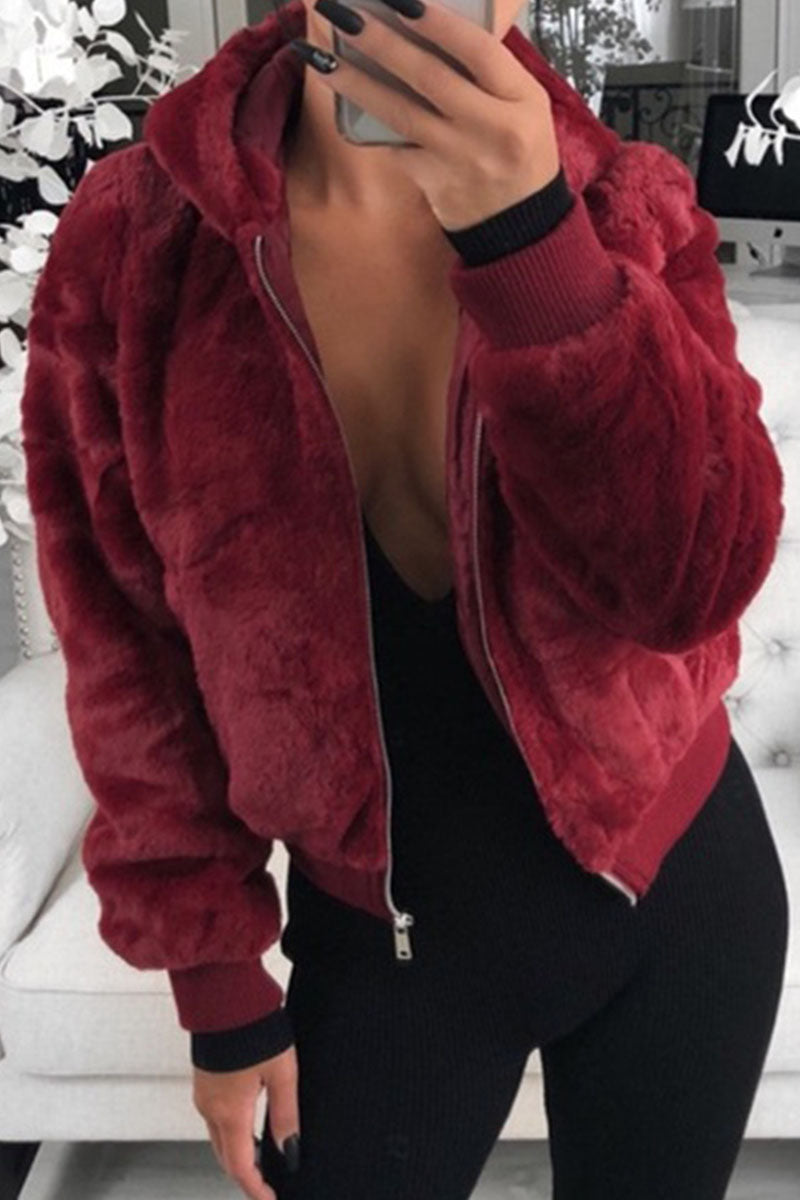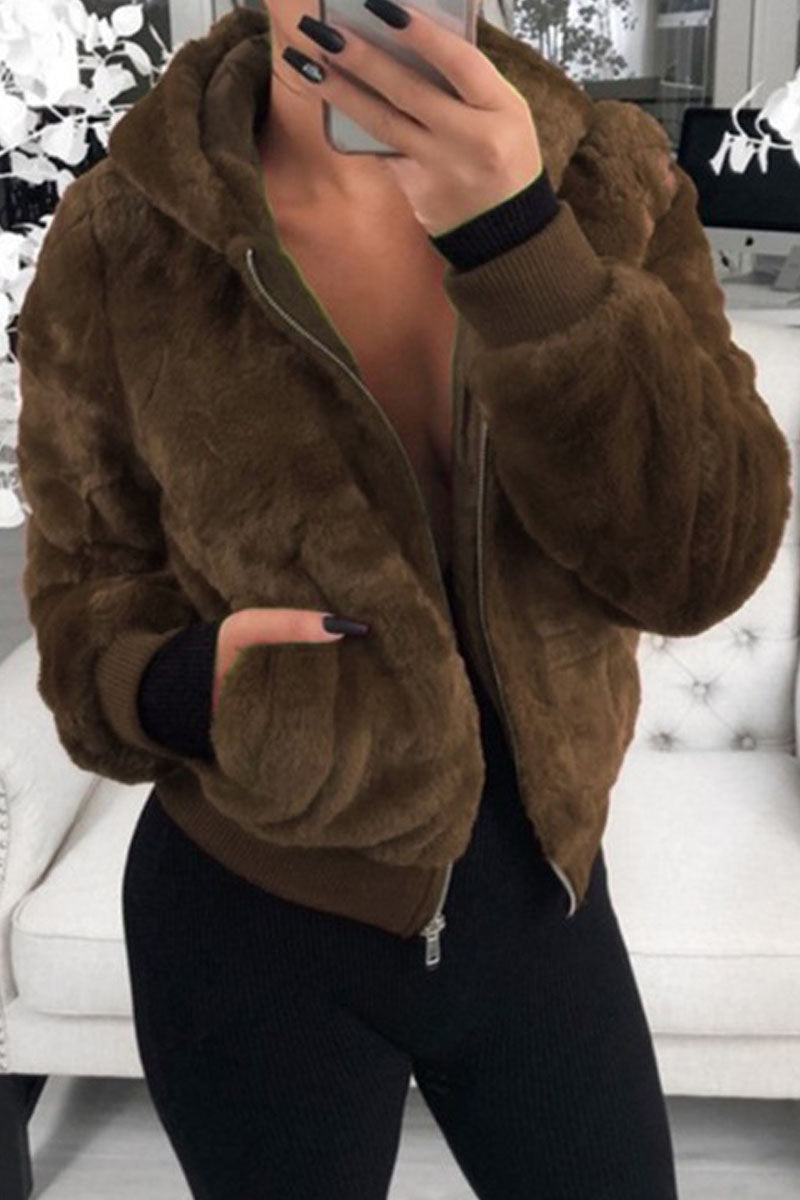 Fashion Street Solid Patchwork Hooded Collar Outerwear(9 Colors)