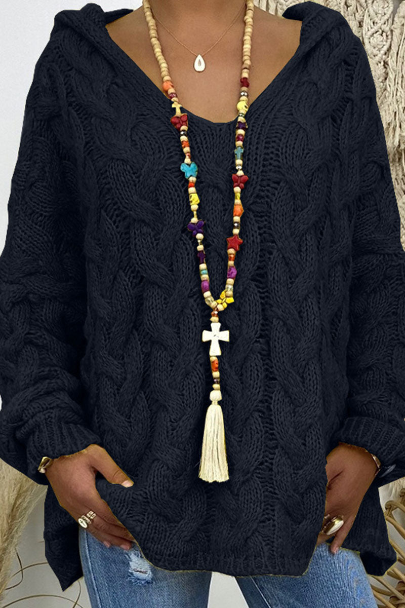 Fashion Street Solid Patchwork Hooded Collar Sweaters(16 Colors)