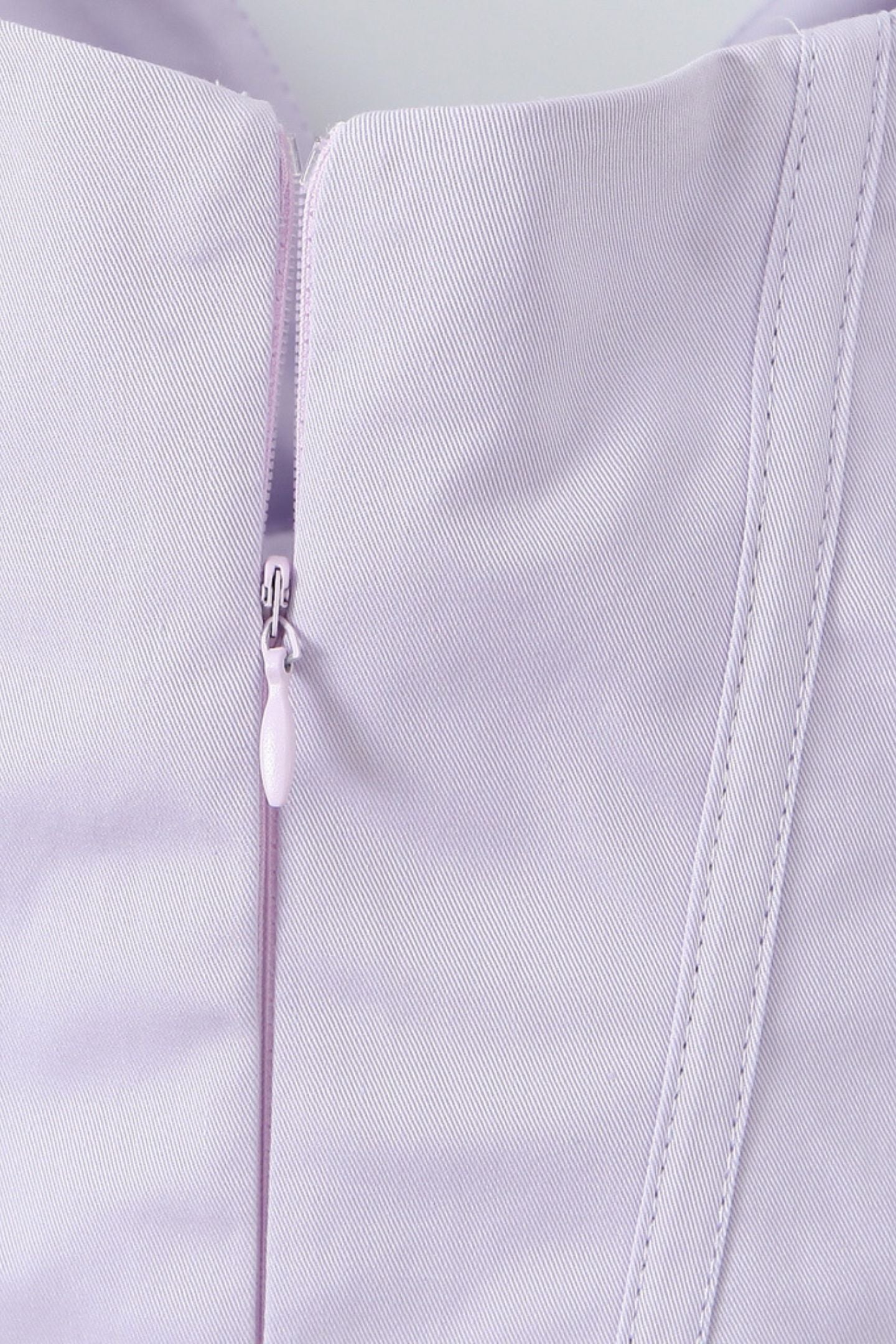 Strapless, Sweetheart Neckline, Corset Style, Pleated Skirt, Midi Length.