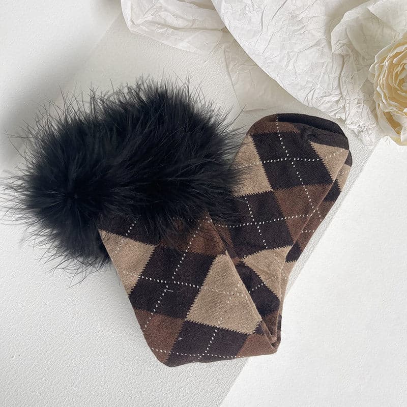 Feather plaid contrast knee high socks