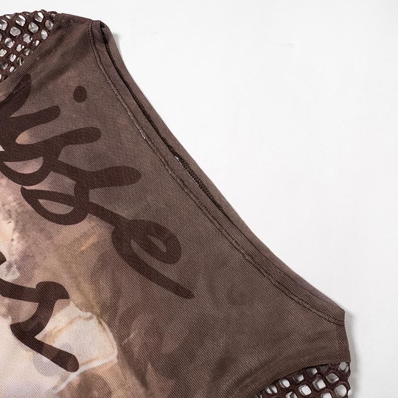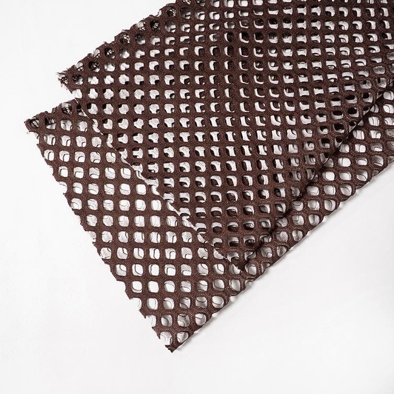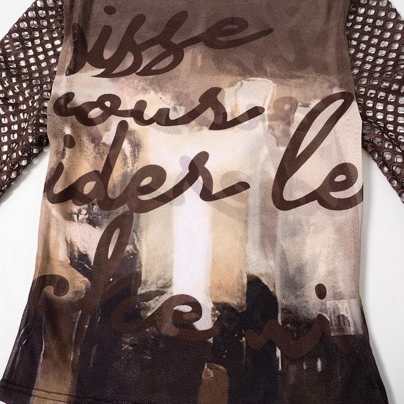 Fishnet long sleeve hollow out mesh contrast cut out top