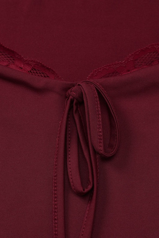 Lace Trimmed Slim Fit Bodysuit Knit Top