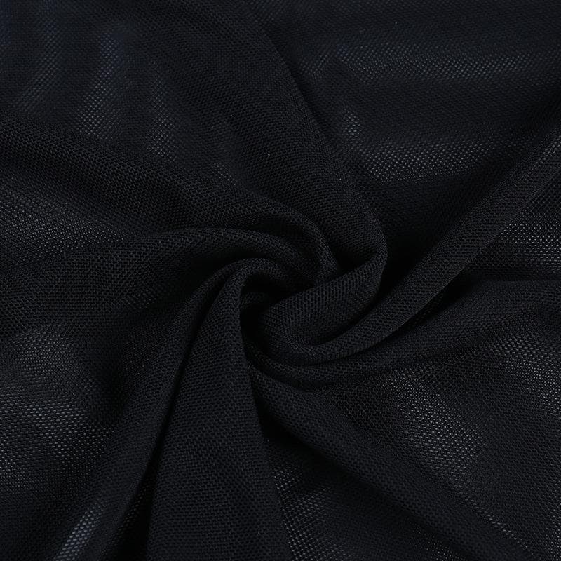 Flared sleeve o ring sheer mesh lace up shrug high neck top