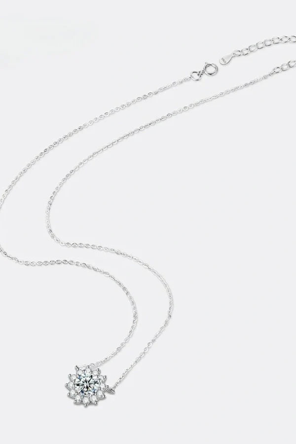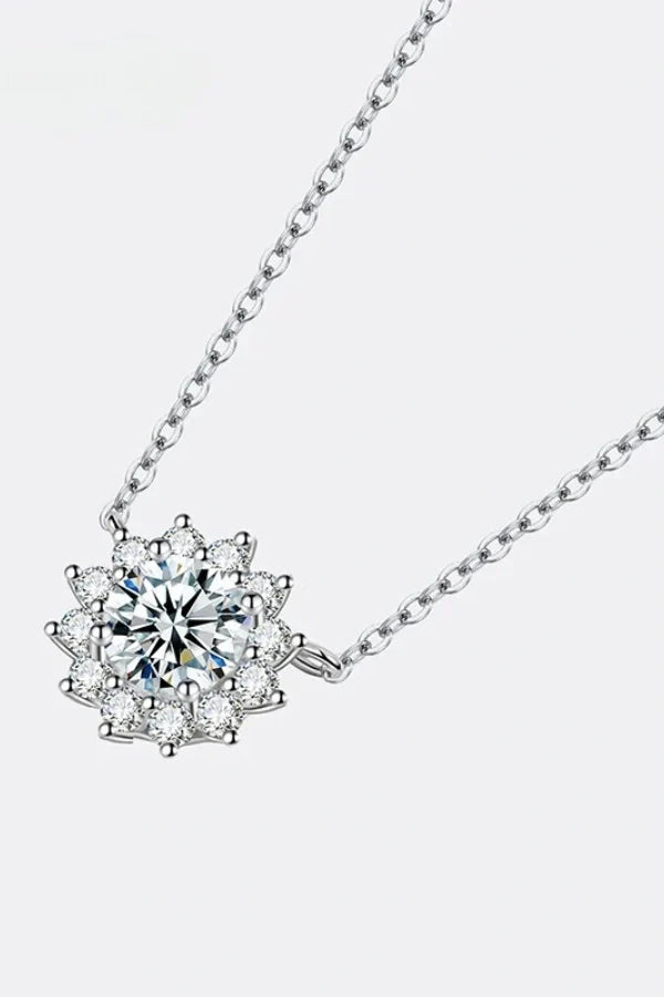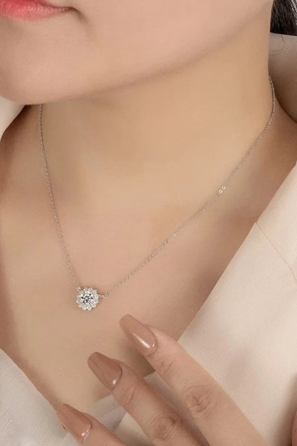The Flor is a luxurious piece designed to captivate. Crafted from S925 pure silver, this necklace features a sparkling sunflower pendant adorned with 1-3CT moissanite stones, known for their brilliance and fire. Whether for a special party, elegant occasion, or everyday luxury, this high-end jewelry piece adds an irresistible touch of sophistication and charm, making you shine with every movement. Perfect for those who appreciate timeless beauty and exquisite craftsmanship.