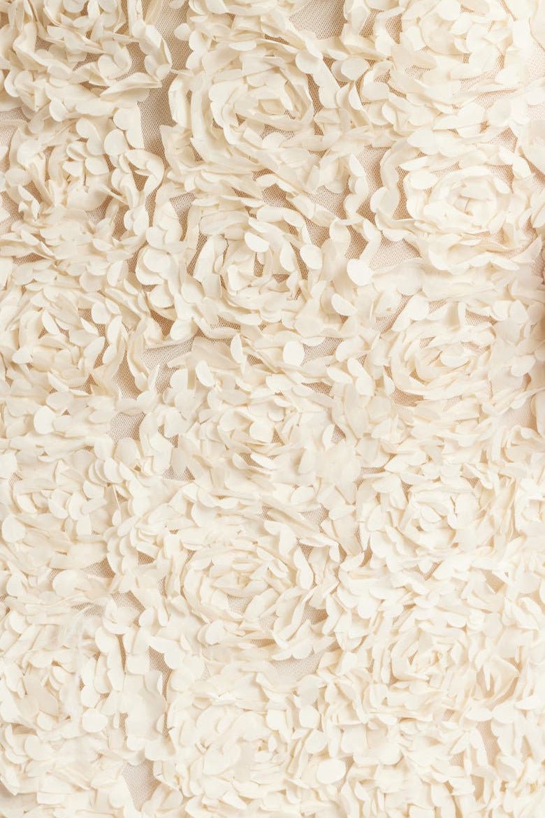 - All-over Floral Applique, Plunge Neckline, Backless, Maxi Length.
