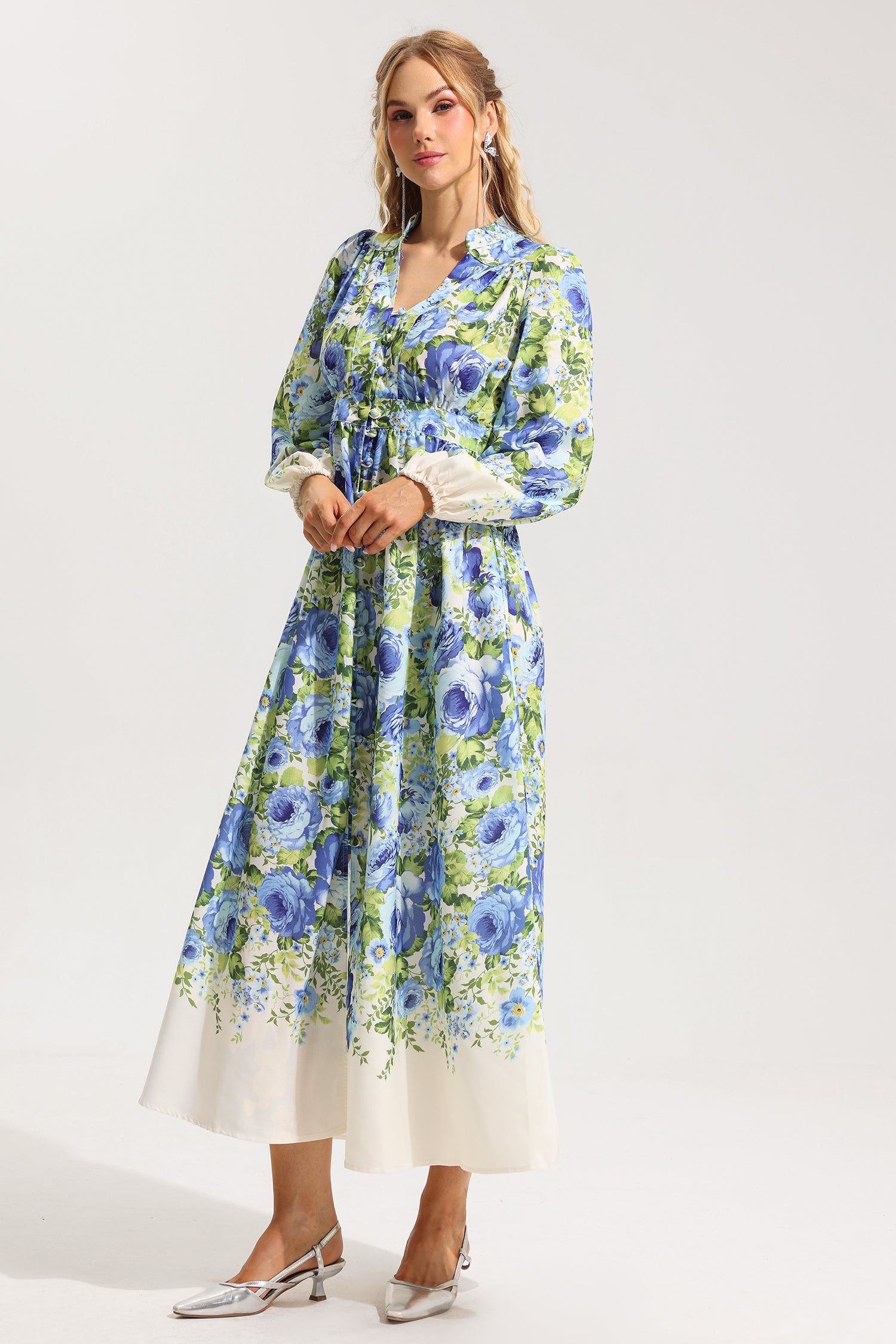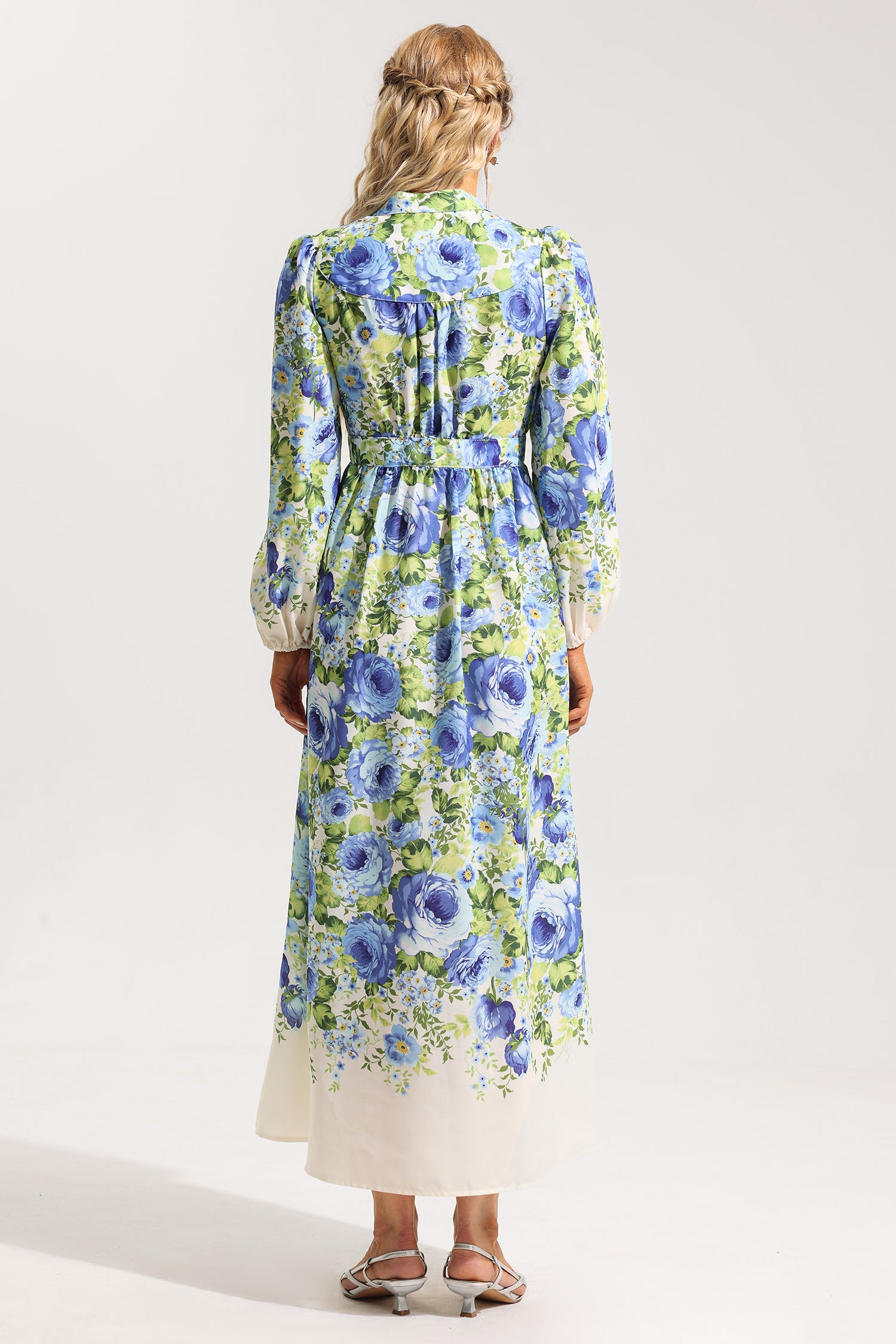 - Floral print, bottom, lantern sleeve, midi dress, multicolor, long sleeve