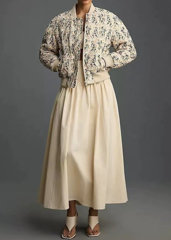 Floral Embroidered Quilted Bomber Jacket – a perfect fusion of vintage charm and modern elegance. Designed with intricate floral embroidery on a soft quilted fabric, this bomber jacket offers both warmth and effortless style. The ribbed cuffs, hem, and collar provide a classic silhouette, while the relaxed fit ensures comfort. A versatile piece that pairs beautifully with dresses, denim, or tailored trousers for a chic transitional look.