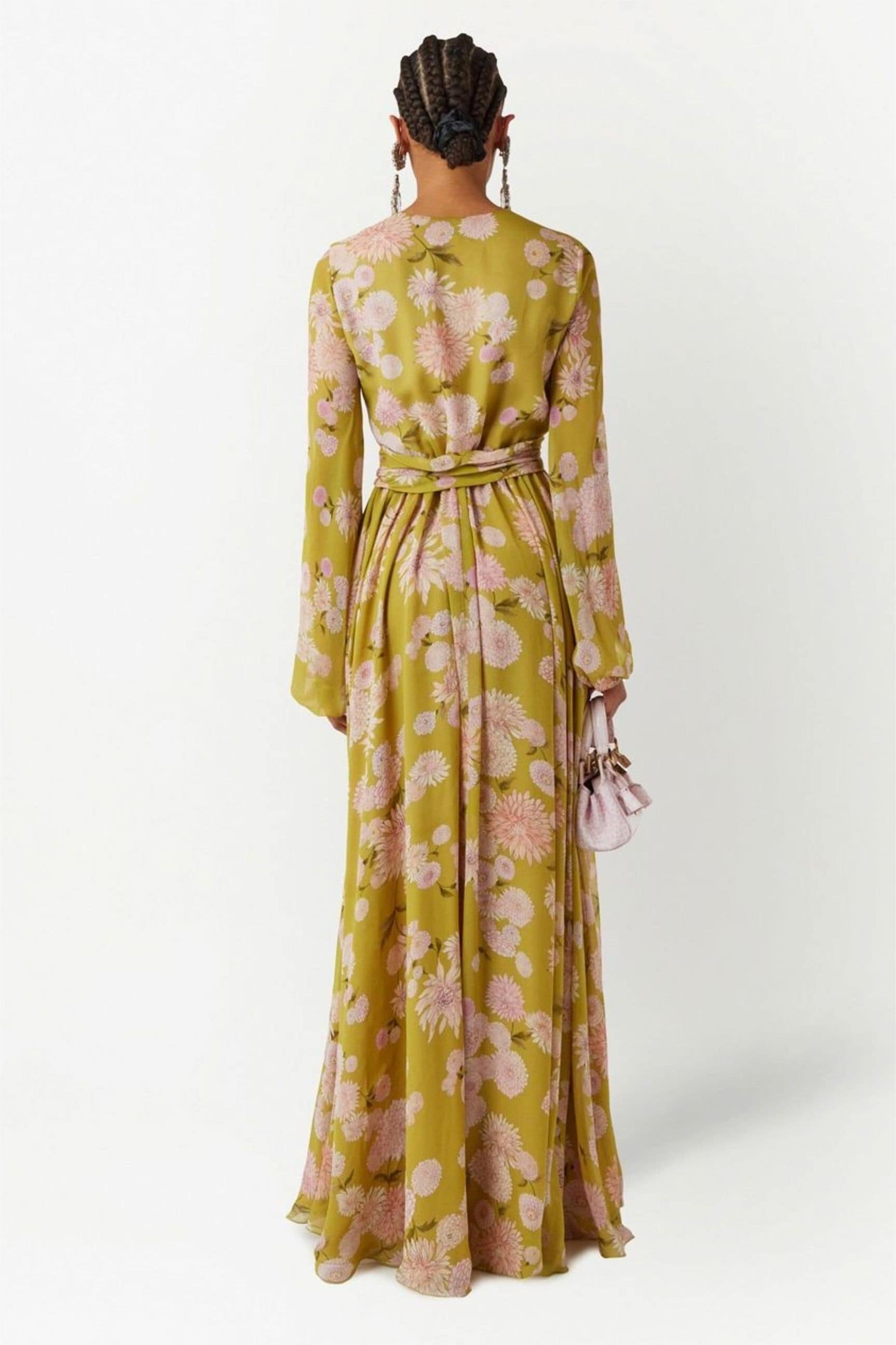 Floral Lace Up Puff Sleeve Maxi Dress