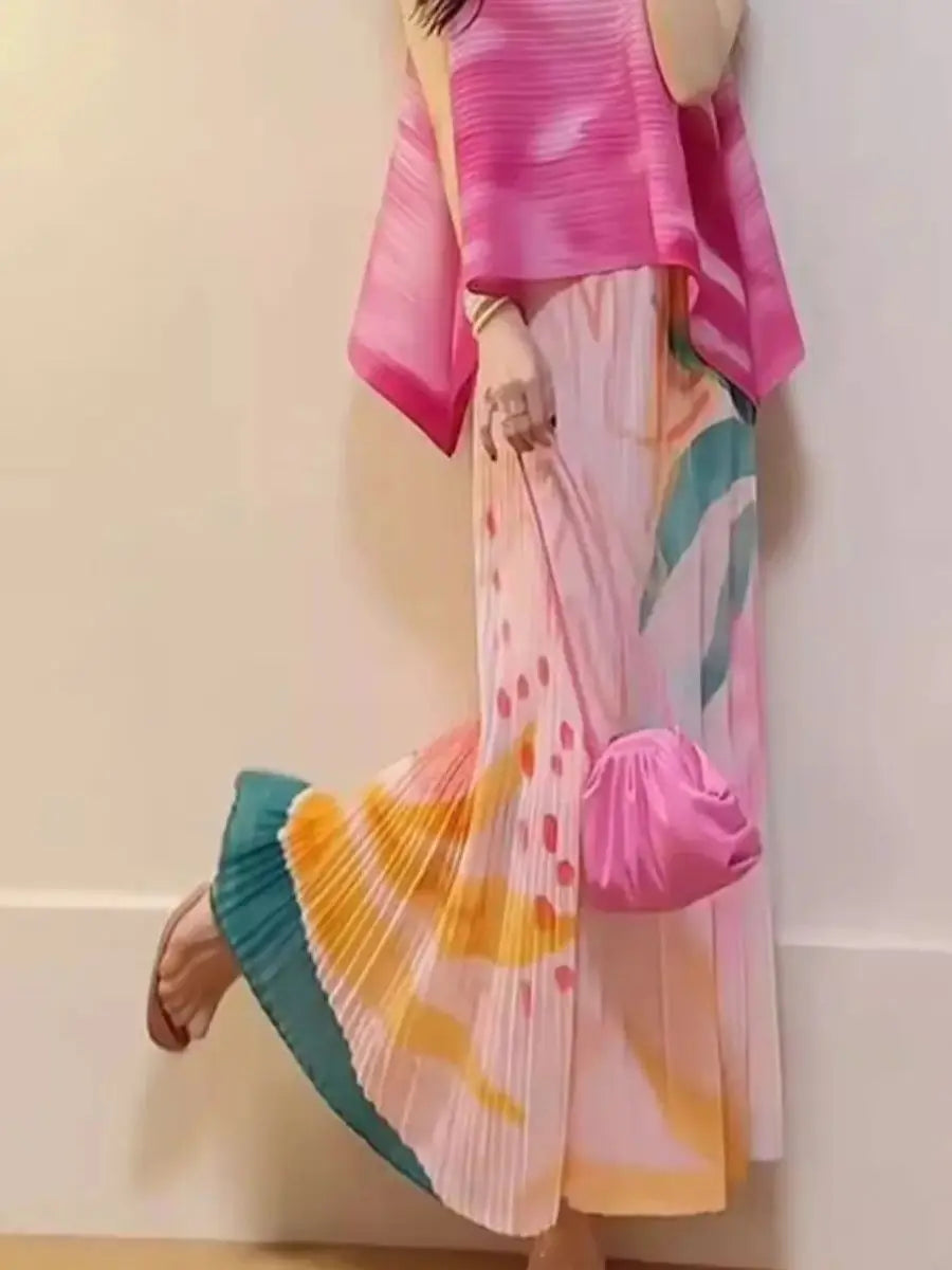 Floral Pleated Slimming High Waist Beach Comfort Skirt