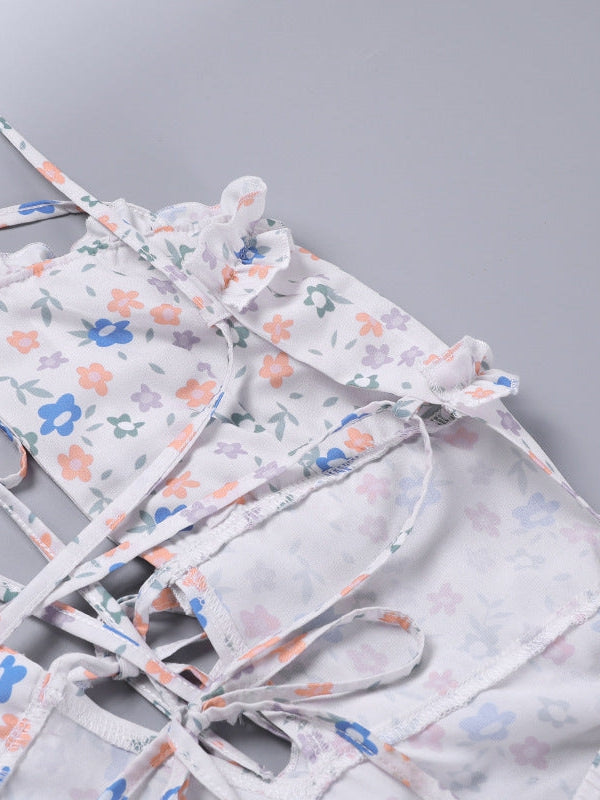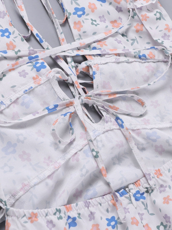 Floral Print Backless Laceup Cutout Split Dress
