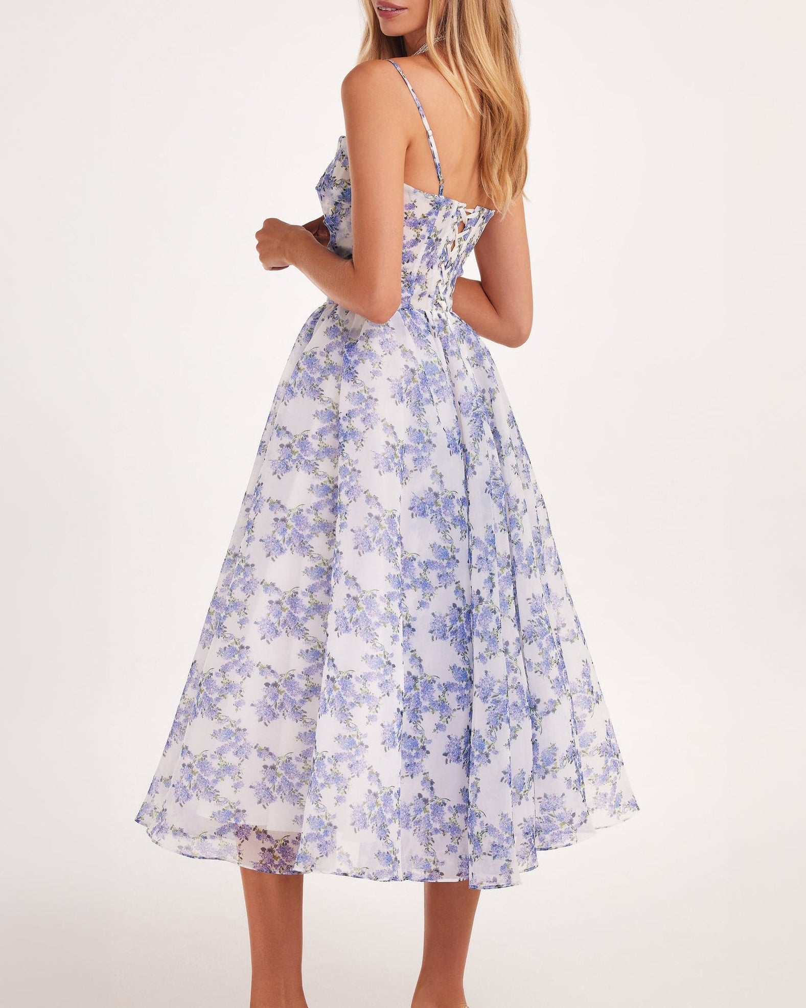 Floral Print Spaghetti Strap Lace-up Midi Dress