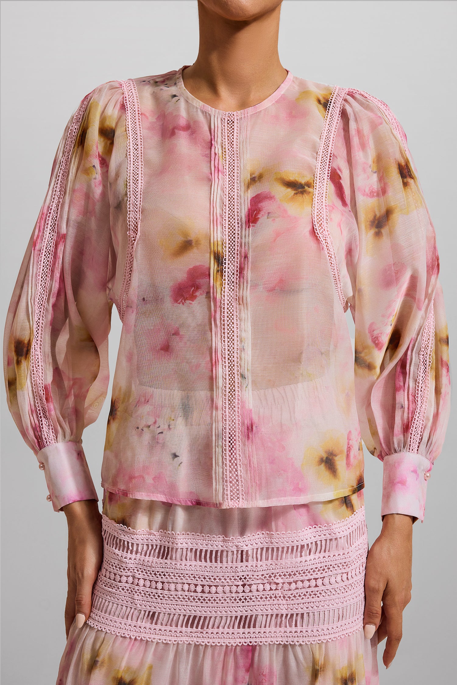 Floral Round Neck Long Sleeve Top & High Waist Midi Skirt Set
