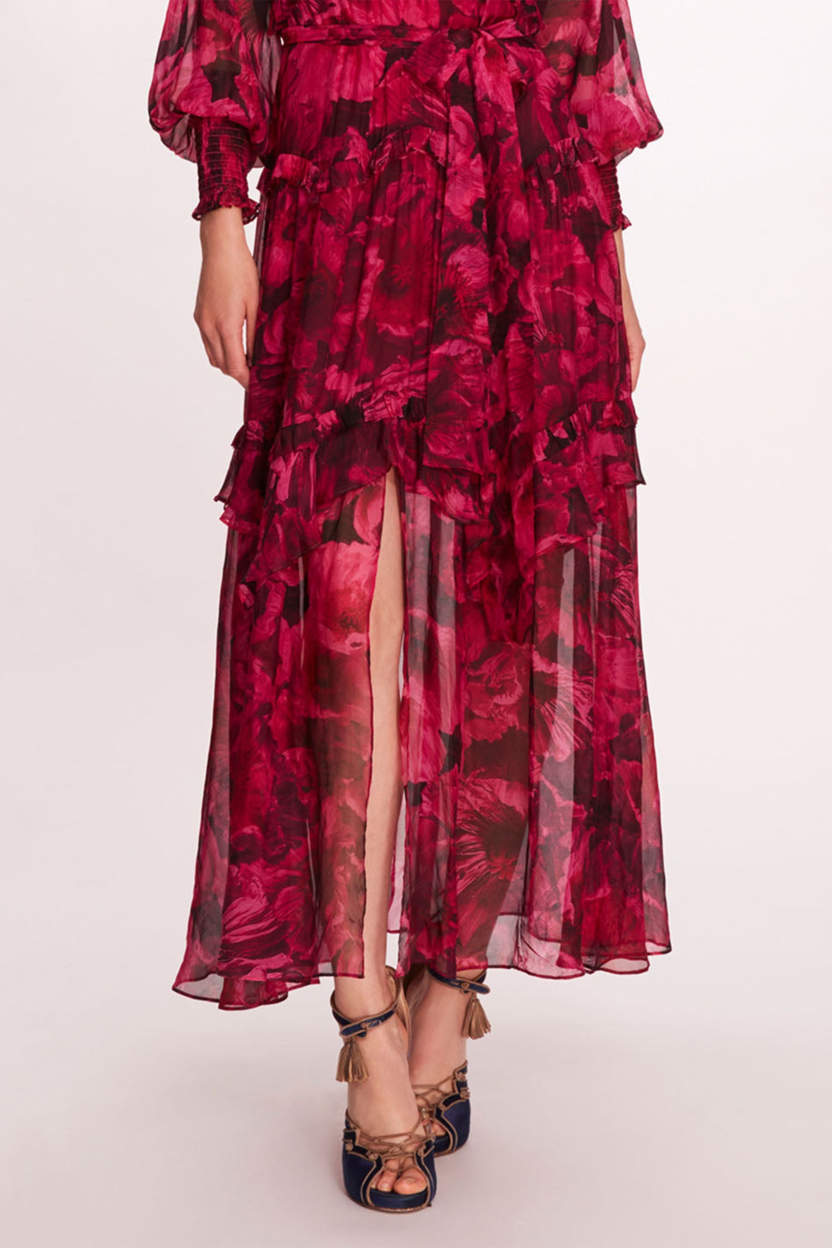 Floral Ruffle Lantern Sleeve Midi Dress