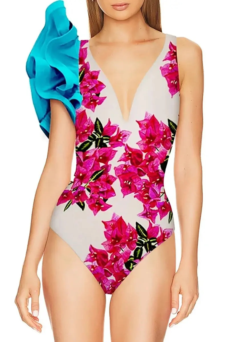 Floral Ruffle One Piece Swimwear Set