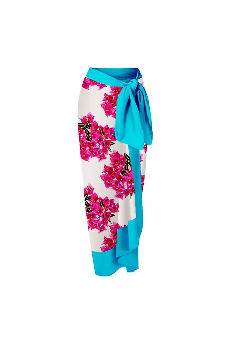 This elegant one-piece swimsuit is adorned with delicate floral prints and soft ruffle accents for a romantic and feminine look. The set includes two styling options: a lightweight wrap skirt for a chic, effortless beach appearance, and a matching flared skirt for a playful and flirty touch. Made from soft, stretchy material, this versatile swim set ensures comfort and confidence whether lounging poolside or strolling on the shore.