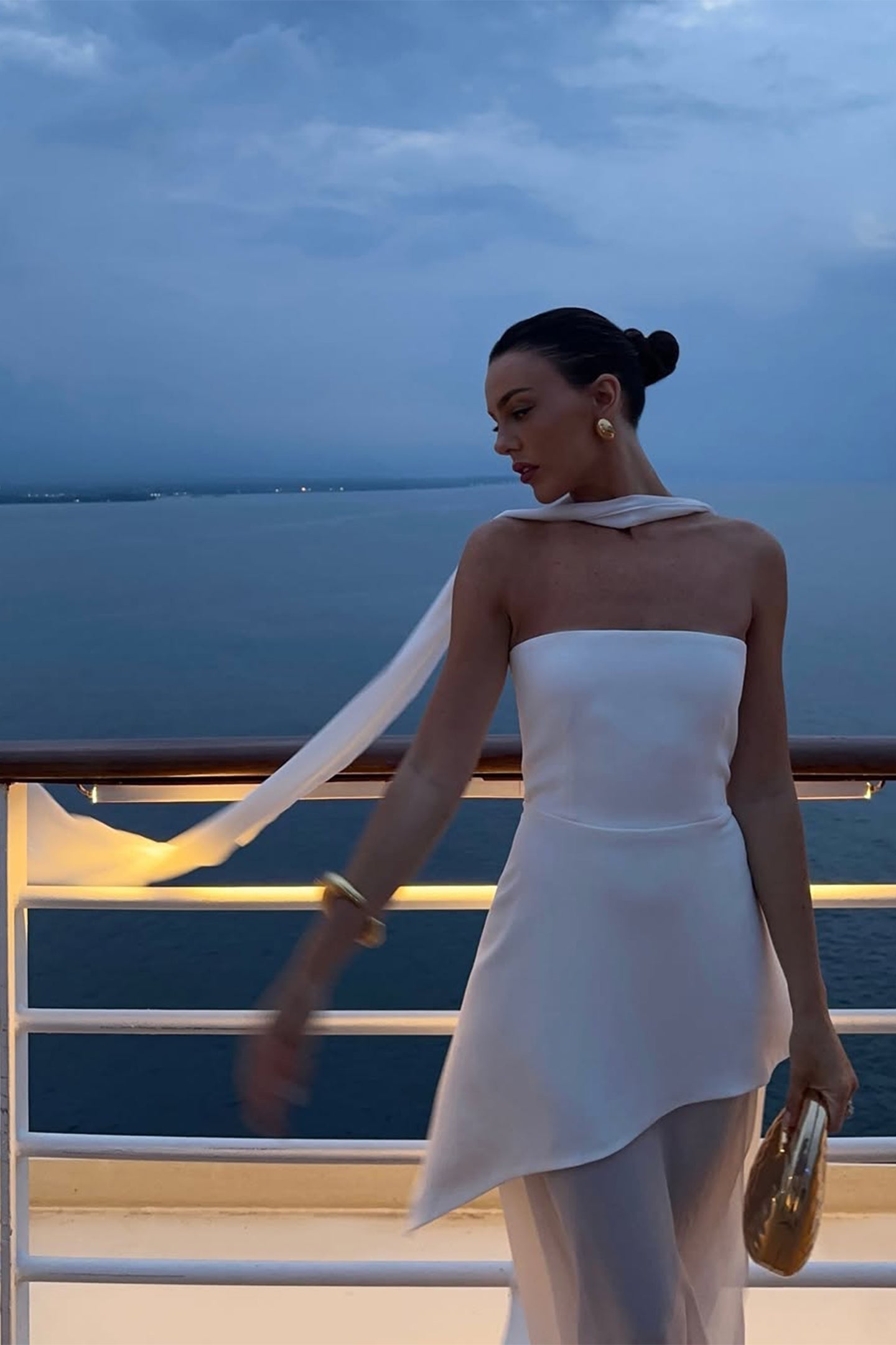 Florence Asymmetrical Chiffon Maxi Dress with Scarf