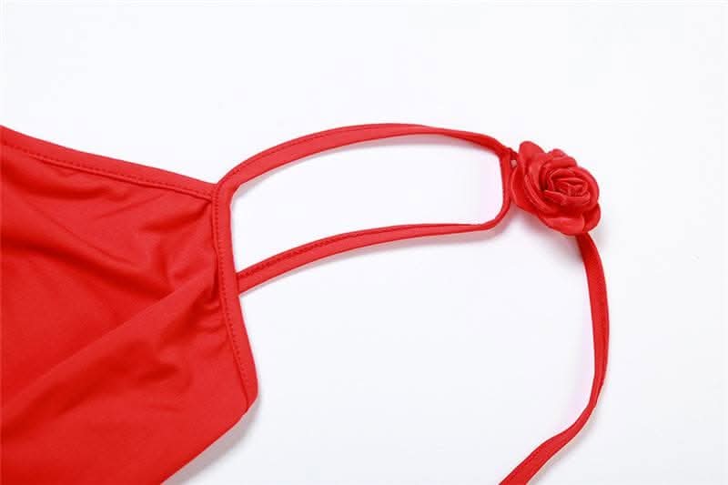 Flower applique backless solid v neck ribbon cami maxi dress-final-sale