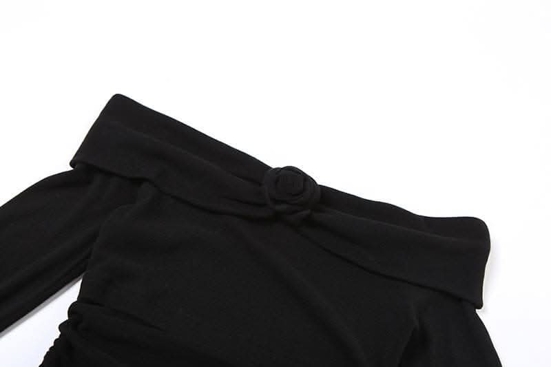 Flower applique off shoulder long flared sleeve slit mini dress-final-sale