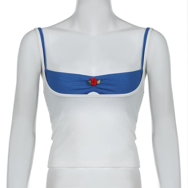 Flower applique ruched 2 piece cami top