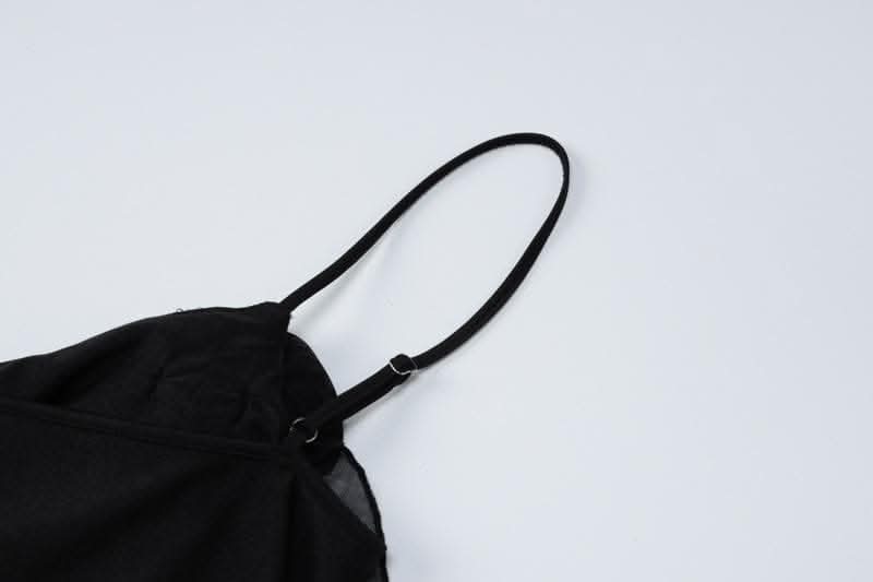 Flower applique solid backless v neck ribbon cami mini dress-final-sale